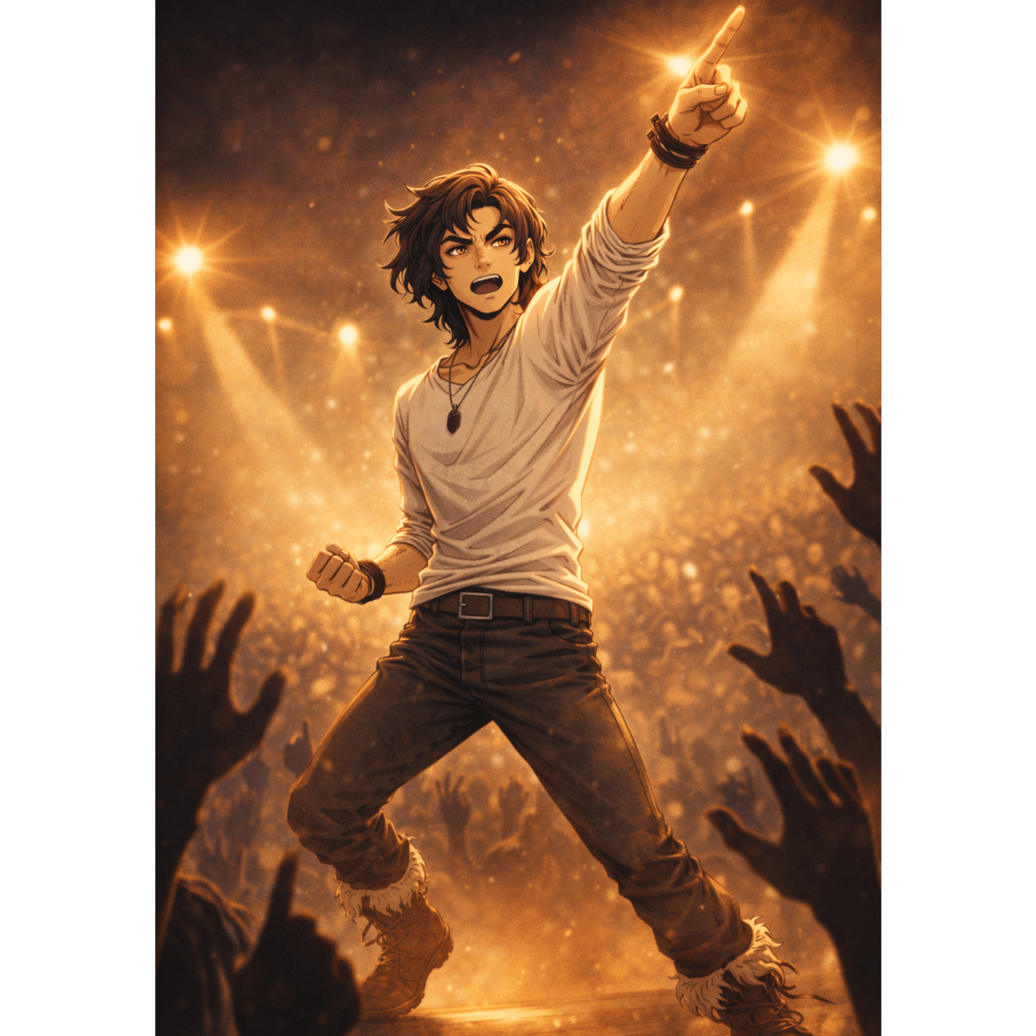 Kicking off with gritty electric guitars and driving indie drums at 176 bpm in A♯ minor, the track melds alt-rock swagger with bursts of triumphant trumpet melodies, Verses lean into tight hip hop beats and syncopated bass, shifting to soaring anthemic choruses where trumpet fanfares layer atop energetic rock textures, Rap sections inject dynamic intensity, while indie instrumentation maintains a hopeful, victorious pulse throughout