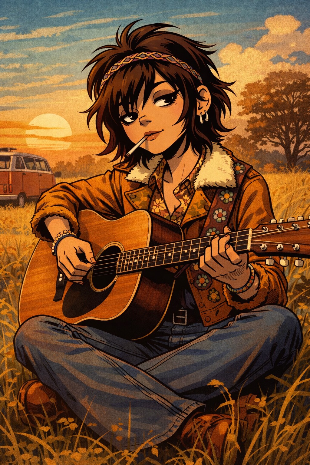 A mid-tempo, reflective folk-rock song with a classic 1960s-70s acoustic vibe, The song opens with crisp, fingerpicked acoustic guitar, simple and melodic, providing a clear harmonic foundation, A soft, steady rhythm section — light bass and subtle brushed drums — supports the guitar without overpowering it, Vocals are warm, expressive, and slightly intimate, with natural harmonies that enter gradually, giving a sense of conversation and storytelling, The melody is smooth and contemplative, conveying both nostalgia and quiet introspection, Lyrics explore societal observations, personal reflection, and subtle irony, with a narrative style that tells a story through the eyes of the singer, The song balances thoughtfulness with a gentle, catchy melodic flow, maintaining a relaxed, human, and relatable feeling, Arrangement stays clean and minimal, emphasizing melody, harmony, and lyric clarity, Occasional light instrumental fills (soft piano, muted electric guitar, or light percussion)