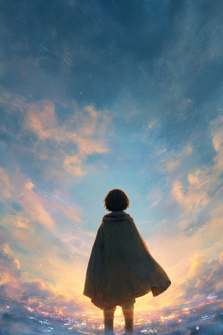 A Japanese instrumental post-classical / cinematic track at 76 BPM in free-flowing 4/4, Minimal piano motifs ripple softly, gradually layered with warm strings and distant horns, Subtle glockenspiel or celesta sparkles appear like fading stars, Pads swell like a dawn horizon, evoking stillness after a long journey, The arrangement should move from sparse, fragile notes into a resonant orchestral embrace, then dissolve into silence, leaving a sense of continuation, Mood: hopeful, timeless, gently solemn, passing the torch to the next generation, Length ~3:20