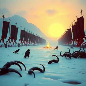 This melodic death metal track fuses pounding double-kick drums, intricate distorted guitars, and a darkly symphonic orchestra, Verses alternate guttural growls and dramatic operatic baritone, while lush strings yield to a soaring, virtuosic guitar solo, The arrangement is dynamic, blending aggression and grandeur