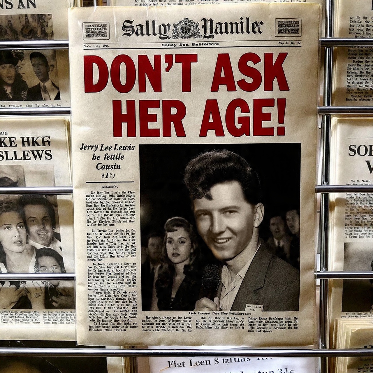 Hard hitting rockabilly / early country-rock, hard rock, boogie-woogie song with a driving walking bass, twangy electric guitar leads, slap-back echo, & light swing rhythm, Dark male vocal delivered in a storytelling style with clear enunciation, humorous attitude, and escalating excitement, Prominent snare and upright bass, impressive guitar licks, occasional stop-time breaks, playful instrumental fills between lines, and a slightly retro 1950s–1960s fun roadside jukebox feel, Energetic, witty, & propulsive with a strong groove, Lots of hooks, melodic, catchy, memorable