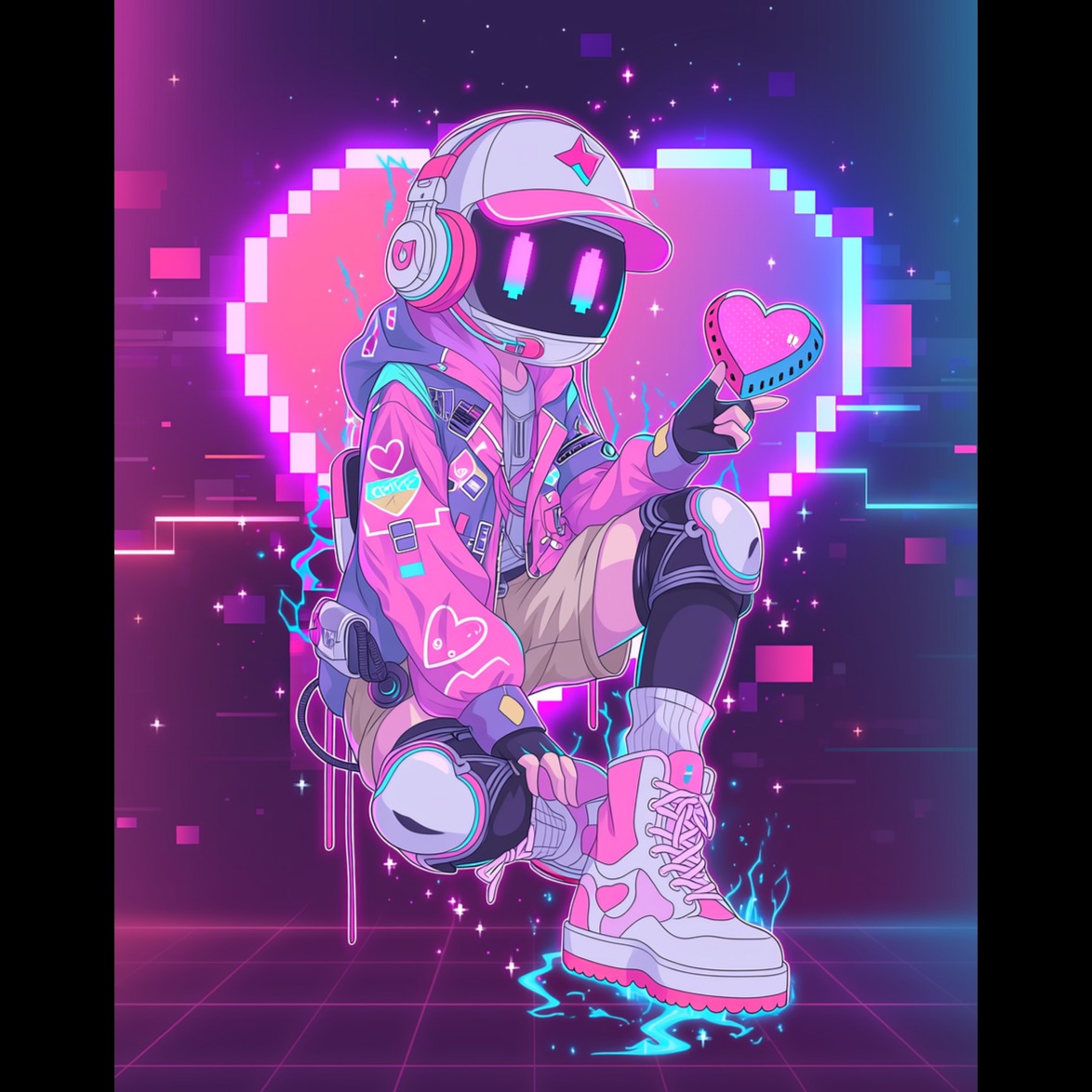 futuristic electronic jam, groovy talkbox vibes, slick japanese hip-hop fusion, bouncy synth basslines, crisp hi-hats and trap-influenced drums, shimmering digital textures, energetic nighttime club energy, innovative ai-glitch elements, soulful robotic vocal chops, high-energy rhythmic drive, polished modern production, vibrant neon-lit atmosphere, futuristic electronic jam, groovy talkbox vibes, slick japanese hip-hop fusion, soulful female robotic vocal chops, ethereal shimmering female harmonies, high-energy feminine digital delivery