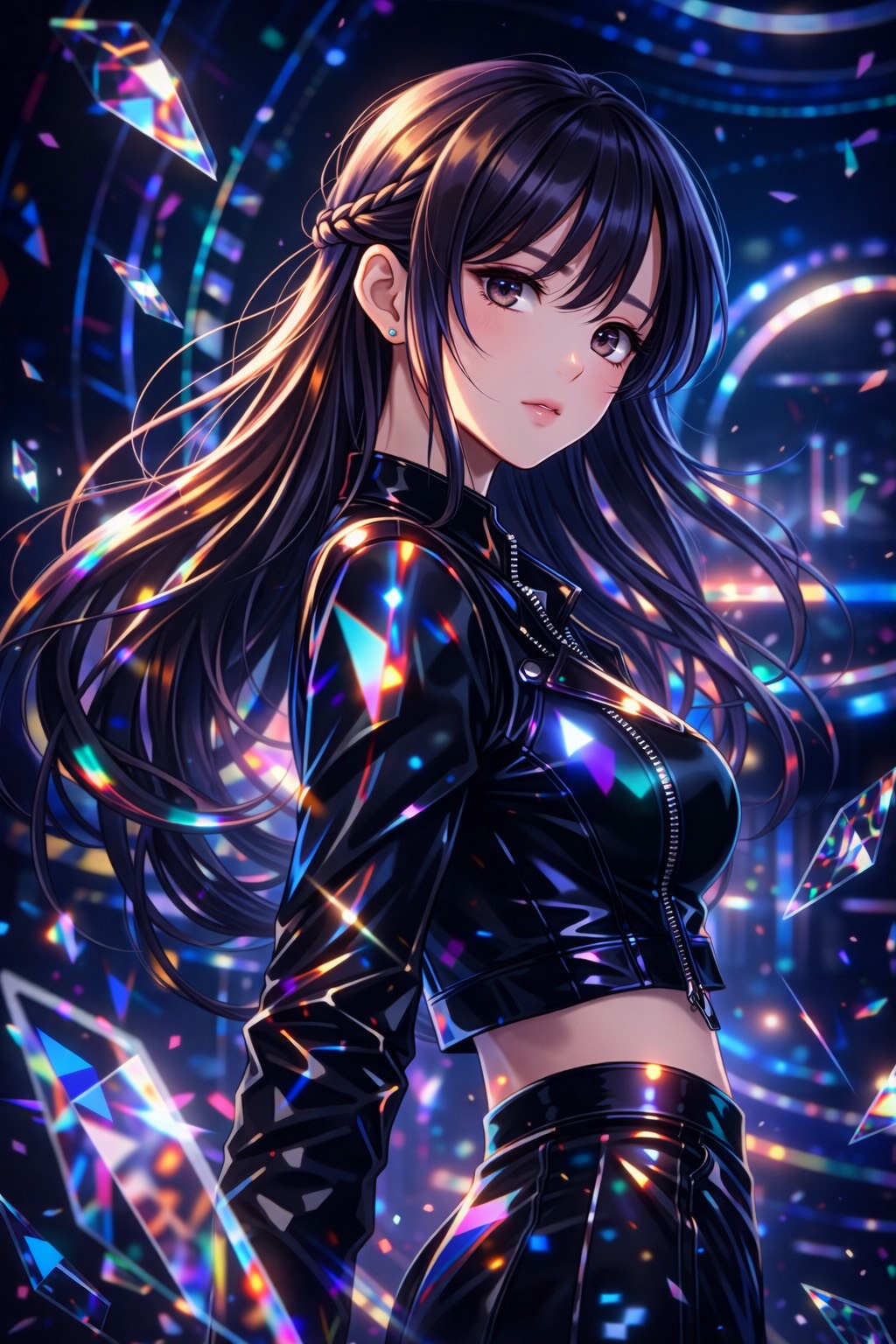 Genre: high-energy dance pop, progressive metal, EDM, Mood: chaotic, aggressive, euphoric, cyberpunk club intensity