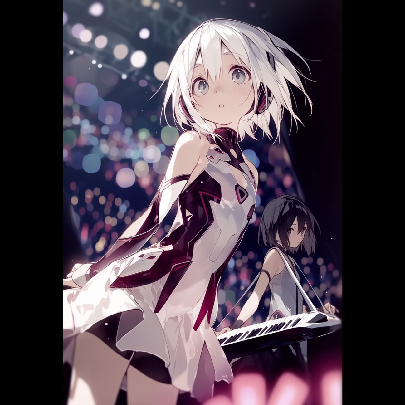 Kawaii Electro Pop × Cinematic Electro Orchestra, bright major key, Cute yet powerful electronic music with dramatic orchestral energy, SOUND DESIGN: