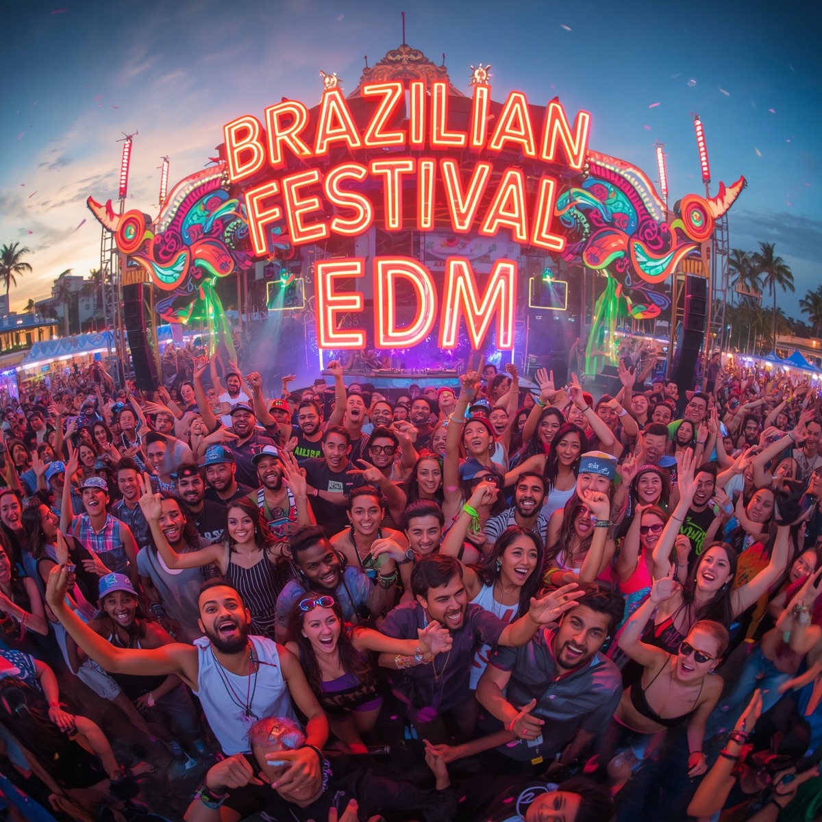 Мощная фестивальная EDM атмосфера огромной open-air сцены с энергией тысяч людей, смесь Festival EDM и Dancehall, Ритмичный dancehall groove с упругим басом и карибским качем, big room EDM бит 126–130 BPM, эпический build-up с нарастающими синтезаторами и massive drop, Широкие supersaw лиды, глубокий саб-бас, перкуссия dancehall, яркие мелодии и солнечная энергия, Пространственное 3D-звучание, круговое эхо, ультра-широкая стереосцена, эффект присутствия в центре фестиваля, Объёмный звук Dolby Atmos, мощные riser-эффекты, white noise sweeps, вокальные chops, DJ live-set атмосфера, гипнотический ритм, эйфорический фестивальный вайб, тёплая тропическая ночная энергия, чистый современный мастеринг