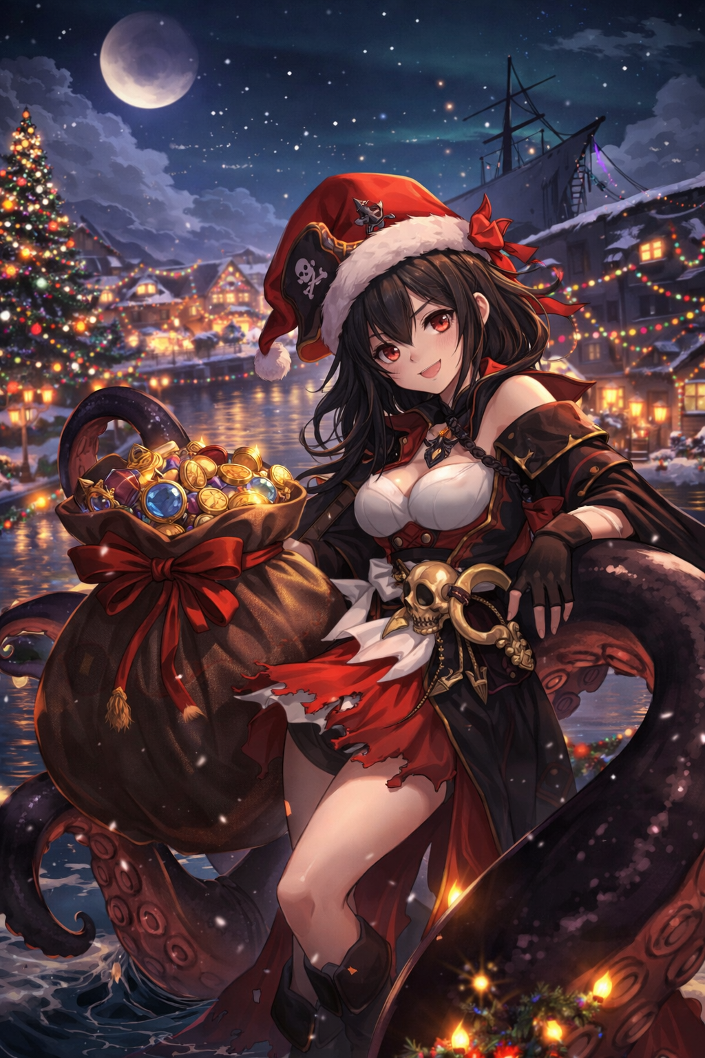 Style: nu-metal fused with festive pirate folk; heavy guitars layered with accordion, fiddle, shanty rhythms, and sleigh-bell accents; dark-but-cozy nautical vibe