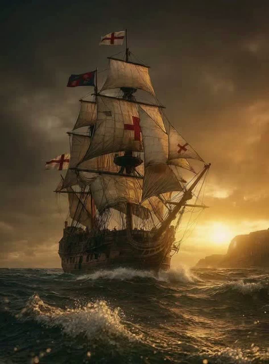 epic sea shanty, battle folk;strong male sailor choir (unison, no harmonies), baritone lead; hurdy-gurdy 2 drone, marching drums, tin whistle, fiddle; ; 4/4, 96 BPM, D minor; mix: lead upfront, choir wide, drums punchy; biggest final chorus, folk vibe, tin whistle all time, patriotic song, ‑guitar, ‑bass, ‑piano, ‑synth