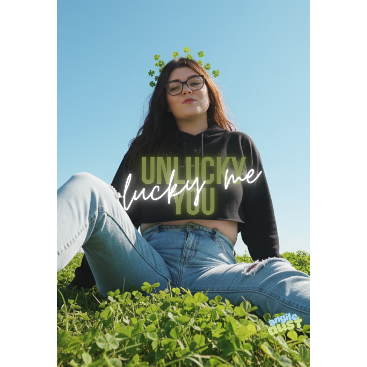 Drop B tuning, Eurodance × Metalcore × Trancecore fusion, rhythmic djent guitars, 808 pulse, danceable synths, cinematic mix, aggressive yet melodic, two female vocalists – one clean melodic, one harsh guttural, alternating energy, verses melancholic clean, choruses anthemic dual, breakdown harsh dominant, bridge emotive clean, outro fading resigned, reverb only on synths and vocal tails, dry guitars, wide stereo, tight mix, lyrics defiant yet tired, human not heroic, themes of luck failure and acceptance, coin and clover imagery, tone bitter realistic sardonic, [Intro] spoken whispered soft build, [Verse] clean vocals rhythmic phrasing tight delivery, [Pre-Chorus] tense build mix of clean and harsh, [Chorus] dual vocals anthemic hook screamed high energy, [Bridge] spoken→scream transition melodic solo underlay, [Breakdown] harsh guttural crowd chant sync with kick, [Outro] clean spoken fade emotional closure, keywords defiant, cursed, weary, cinematic, relentless