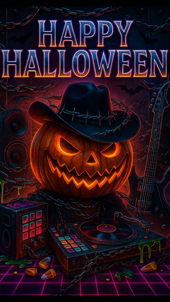 Deathcore, Alternative Metal, Synthwave, heavy breakdowns with industrial synth layers, neon-soaked distortion, guttural and shrieking vocals with moments of clean eerie chanting, theatrical and tongue-in-cheek satanic overtones, fast double kicks, syncopated chug riffs, dramatic atmospheric pads, glitchy electronic accents, absurdist dark humor