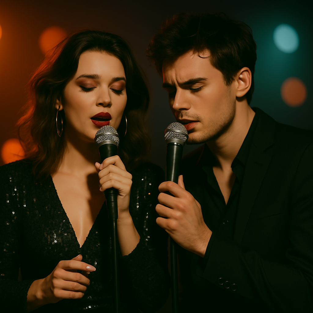 This digicore-inspired pop duet opens with bright, layered analog synths and glitched textures over syncopated techno grooves, Alternating verses weave dynamic vocal interplay before swelling, arpeggiated choruses rich in interlocking harmonies, percussive vocal rhythms, dramatic crescendos, jazzy touches, and deep, full bass, The closing section remixes in dangdut house beats, infusing infectious rhythm and fresh flair
