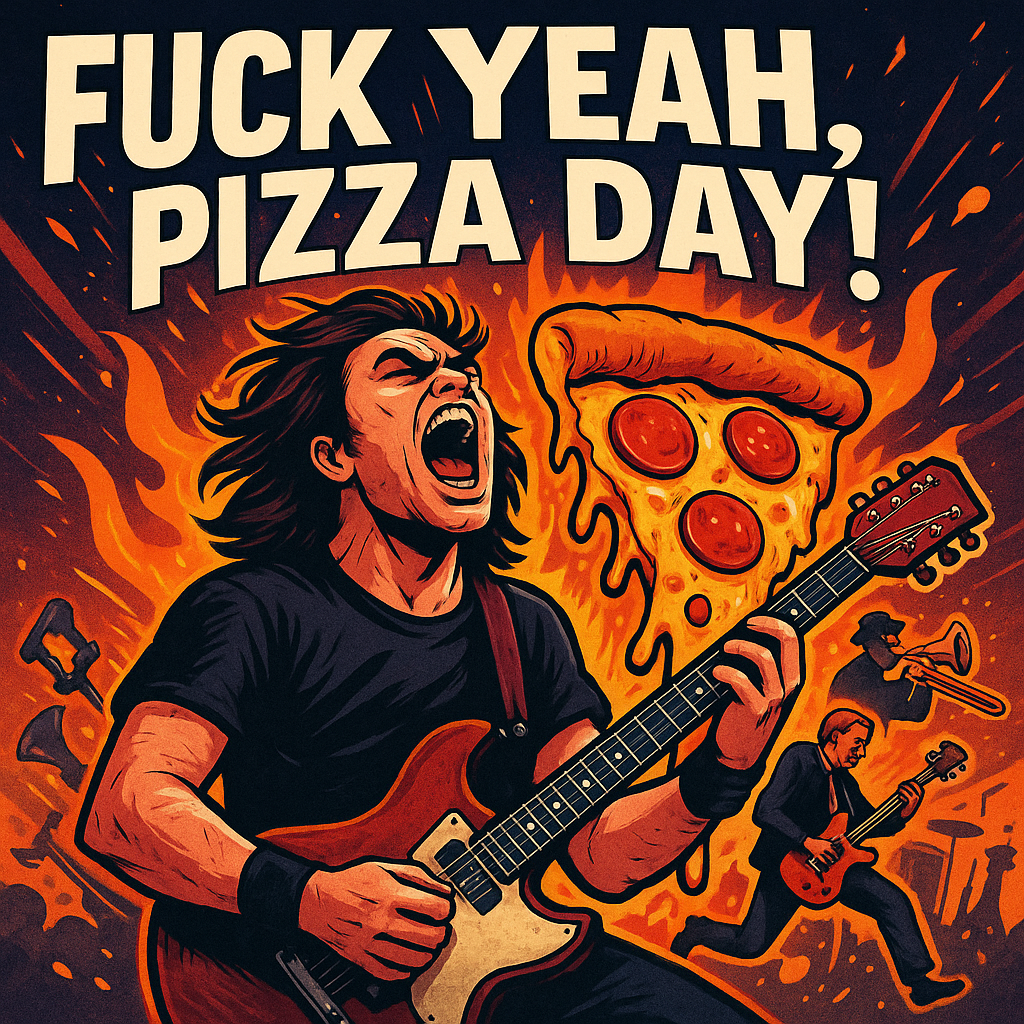 Comedy glam-punk-ska rock at 150 BPM in E major, Layered distorted guitars, wild ska brass, dramatic drums, pig squeals, Latin chant choir, children’s choir, and kazoo solos, Alternates spoken word, shouted vocals, and melodic highs, Over-the-top dynamics, theatrical flourishes, ridiculous FX, guitar solo breakdown, and chaotic energy, Clean mix with camp absurdity and full sonic mayhem