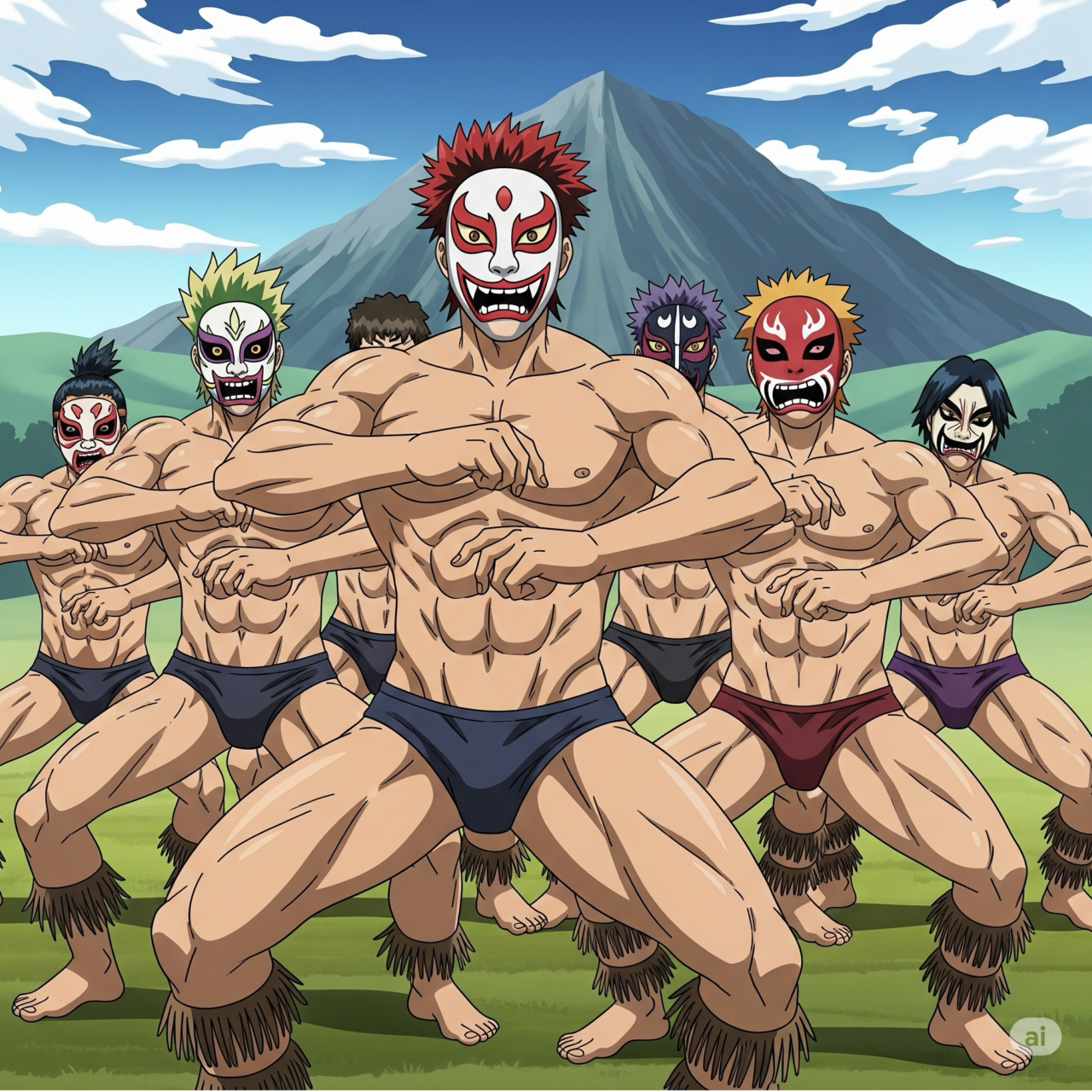 Male Vocals Only, A cappella, Layered Group Vocals, Tribal Chant Style, Intense Rhythm, Deep Harmonic Layers, Powerful Stomps and Claps Simulated Vocally, Raw and Wild Energy, Echoing Shouts, Repetitive Short Phrases, Call-and-Response Style, Dramatic Build-Up, High Dynamic Range, Percussive Vocal Effects, Epic War Dance Atmosphere