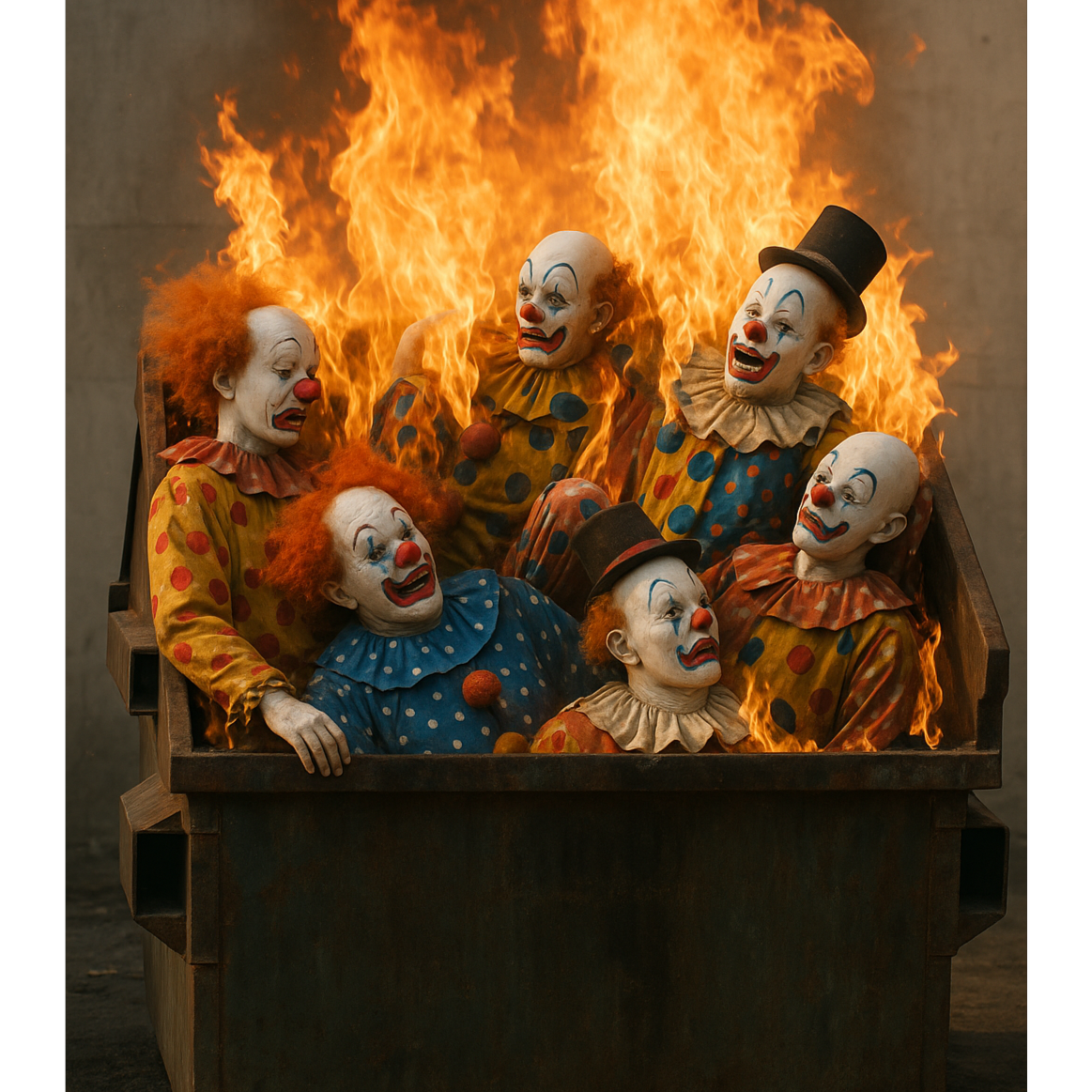 A surreal blend of lo-fi haze and haunted carnival swing— breathy vocals drift like whispers through cracked megaphones, layered over jazzy Rhodes that wobble like warped calliope keys, Swung grooves twist with a broken elegance, grimy bass lurches beneath trap-metal shadows, and ambient textures swirl like smoke from forgotten festival grounds, Mellow synths spiral over 140 BPM Memphis phonk beats, echoing like carousel melodies slowed to a crawl, Sparse, soulful lyrics loop like nursery rhymes sung in reverse—wrapped in warm reverb and DIY horrorcore grit, Distortion blooms like rust on porcelain horses, while melodies sway between melancholy and menace, The vibe is hypnotic, theatrical, and deeply unsettling—where childhood dreams decay into rhythm, and every note feels like a memory trapped in a music box