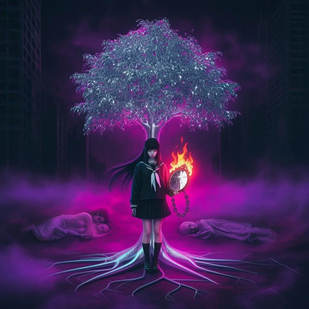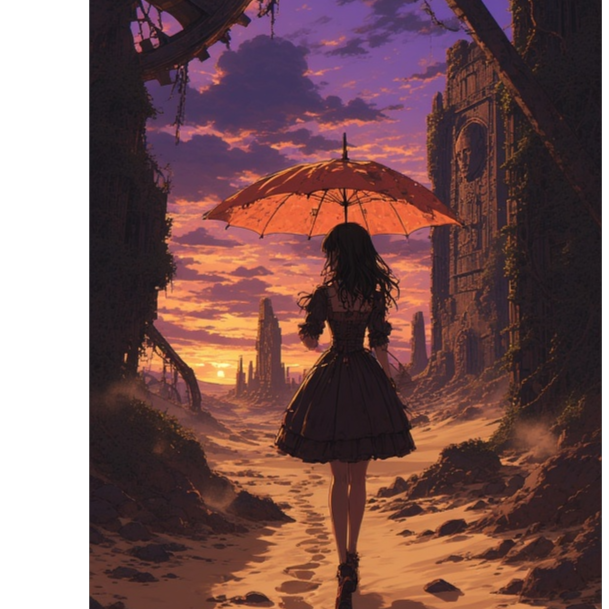 Ambient cinematic ballad opens with soft wind, humming, and distant piano over a bed of granular synth textures, A mezzo-soprano voice delivers poetic Japanese verses with delicate phrasing, layered with ghostly vocoder harmonies and soft choir pads that bloom into the pre-chorus, Ethereal glockenspiel and shakuhachi echo through the decayed halls of a forgotten world, At the chorus, a sacred ambient choir rises — rich in modal harmonies and suspended clusters — as strings and taiko swell beneath fading echoes of voices long past, The music shifts between fragile stillness and bittersweet grandeur, painting the ruins of memory with light, Final phrase leaves a whisper in the wind, a haunting farewell