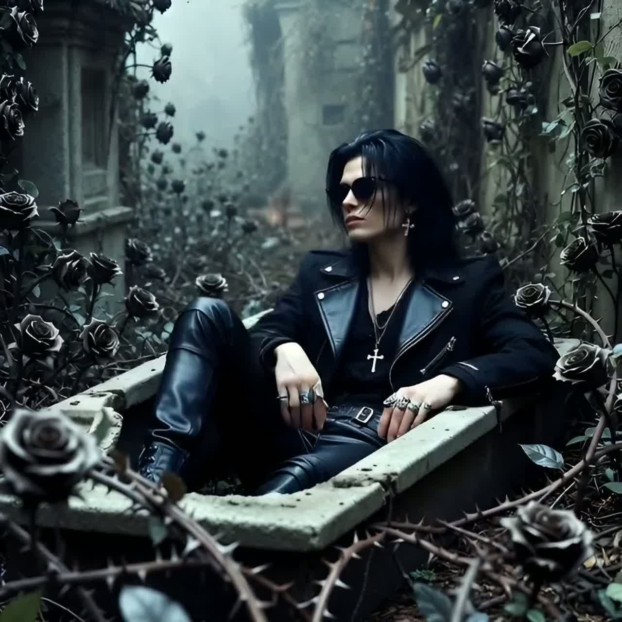 Gothic Metal, Gothic Rock, Sad Mood, Decadent Atmosphere, Deep Baritone Male Voice, Lust Clean Guitars Arpeggios, Melodic, Distorted Guitars, Reverb, Flanger, Delay, Heavy Drums, [Mastering is Clean and Crisp], ‑instrumental start only, ‑intro wordless vocals excluded