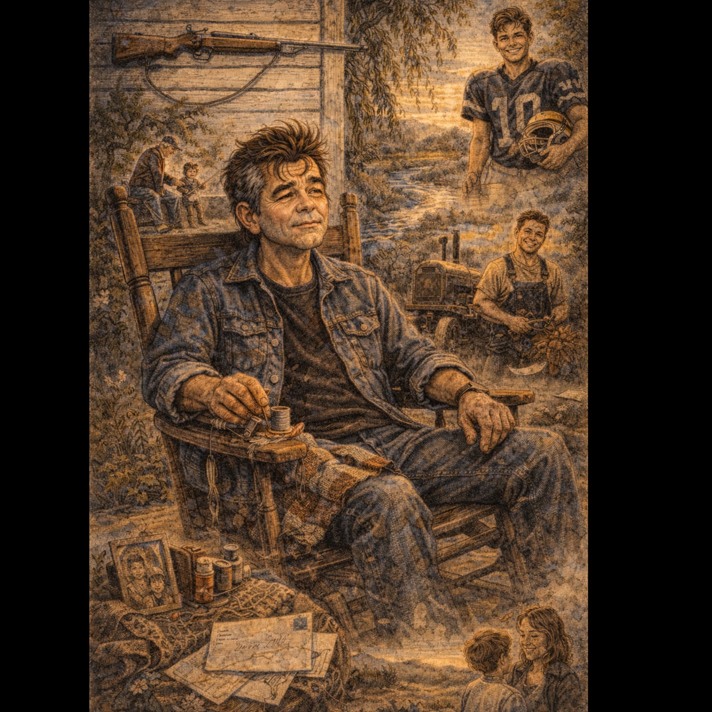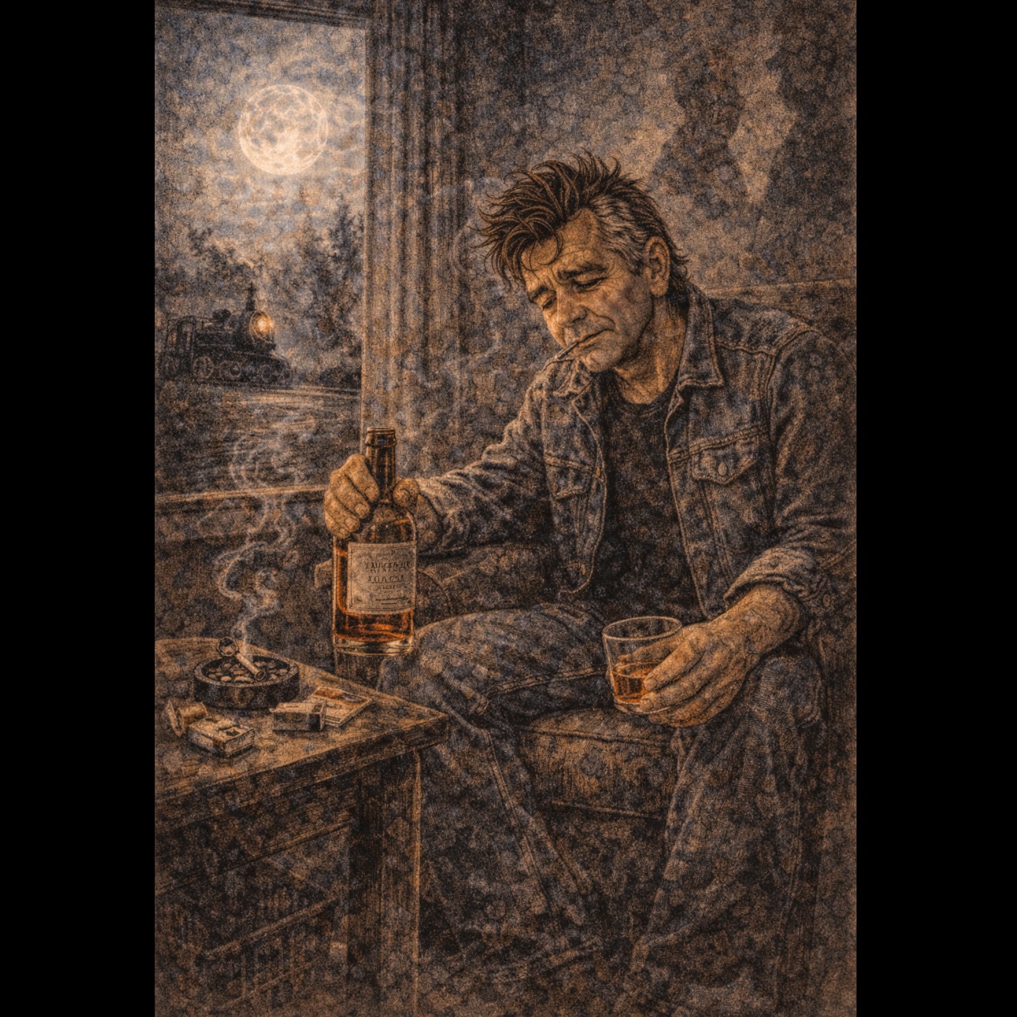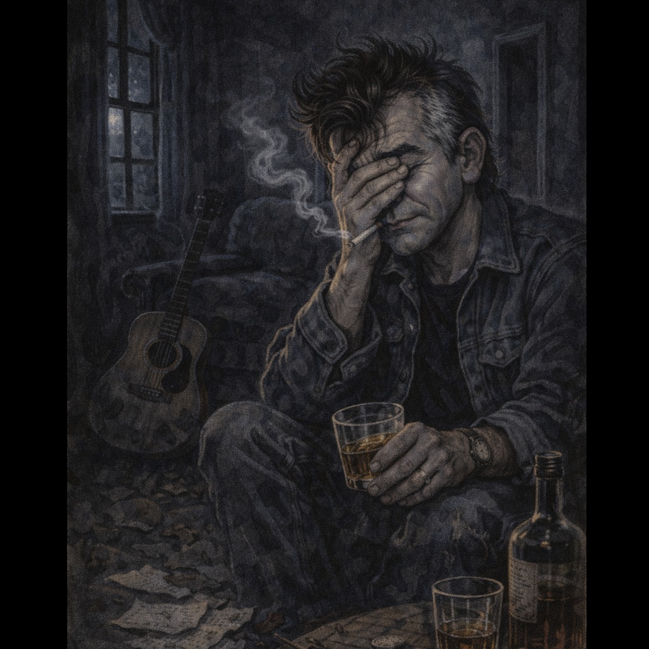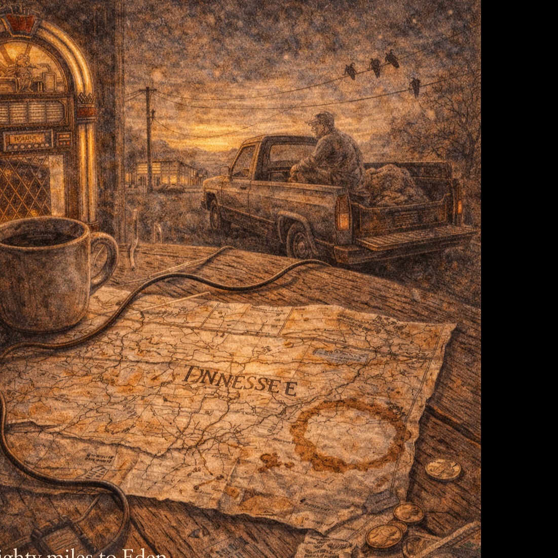 country, gritty, twangy, outlaw country, country western, deep male vocals, ‑female vocals