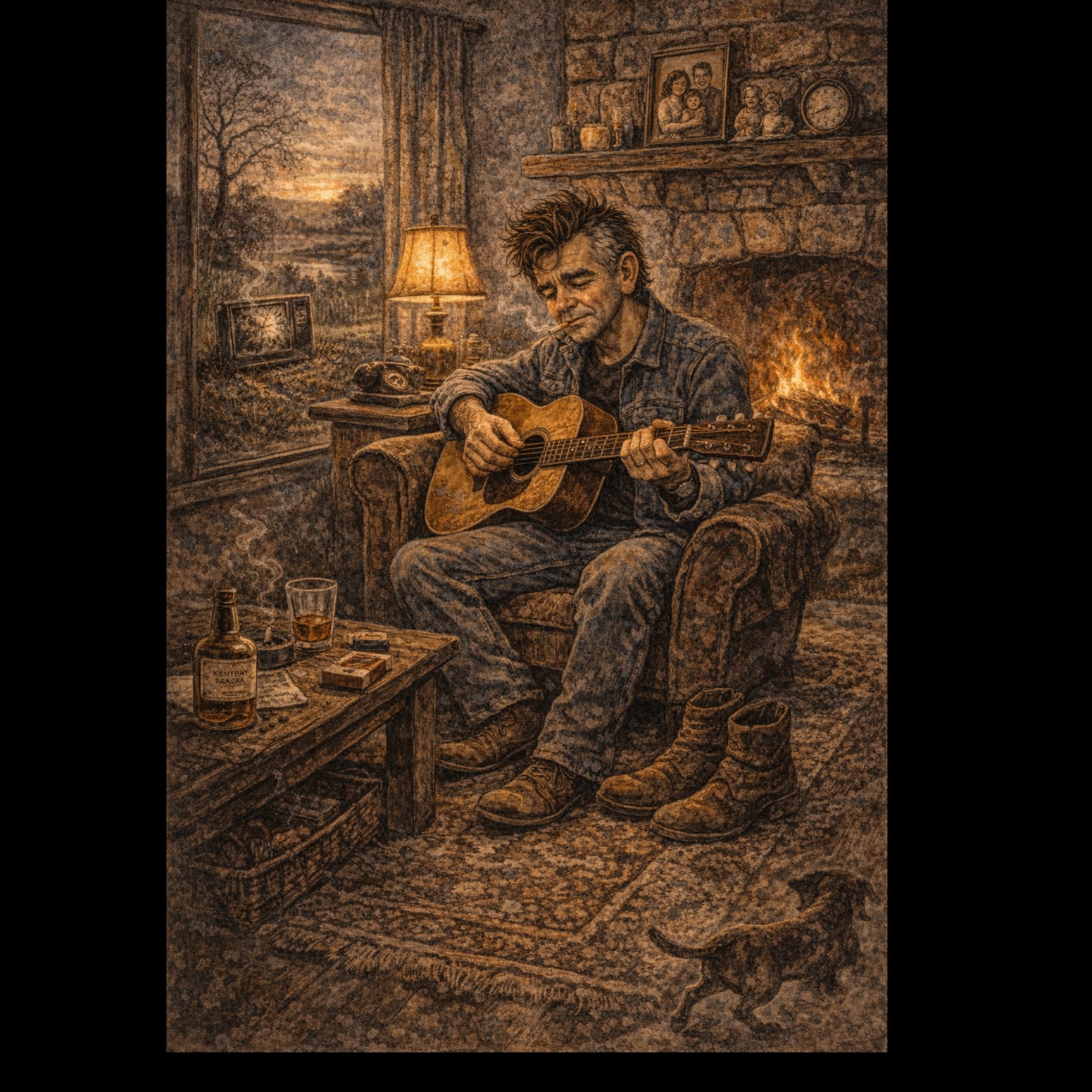 country, classic, twangy, singer-songwriter, male vocals, old male vocals, heavy acoustic guitar picking and strumming