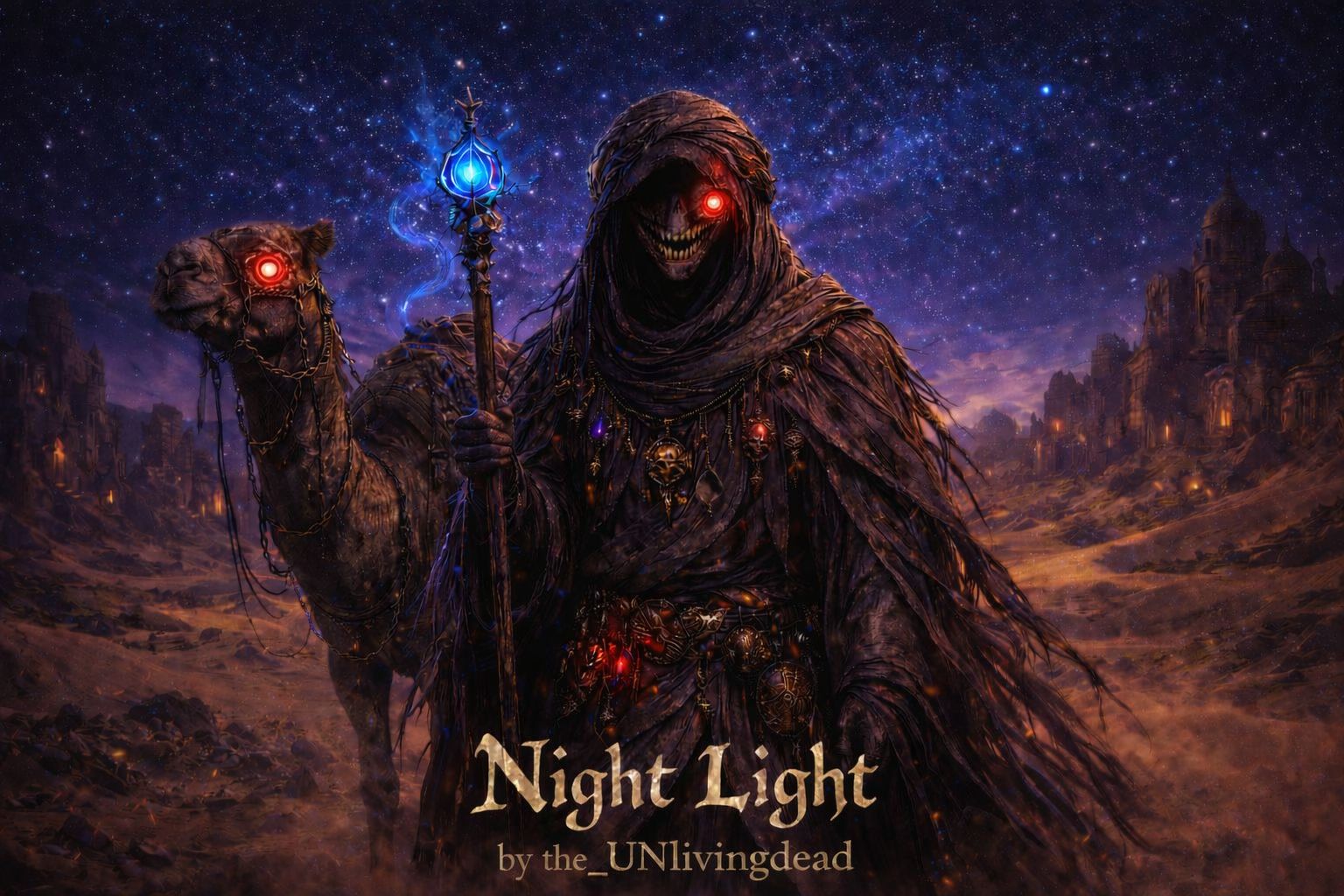 Dark, intensely Arabic club track inspired by Moroccan night rituals and desert trance, Dominant Arab flute leads (ney, gasba, mizmar inspired) play raw, breath-heavy, ornamented phrases in a minor Hijaz/Phrygian-style scale with microtonal bends, Hand percussion textures echo darbuka and frame drums beneath a heavy four-on-the-floor kick, creating an ancient-meets-club pulse, Atmosphere feels like resurrection at a midnight souk—heat, smoke, chanting energy, Deep sub-bass slowly rises and consumes the mix as shimmering Arabian Nights synth pads swirl and detune, melting perception, Tension builds relentlessly until a massive bass drop crashes in—low-end surges, synths distort and smear like heat waves, rhythm briefly fractures, then re-locks deeper and heavier, fully tranced, Hypnotic, ritualistic, overpowering, Desert rave under strobe-lit stars, Track length ~2:50
