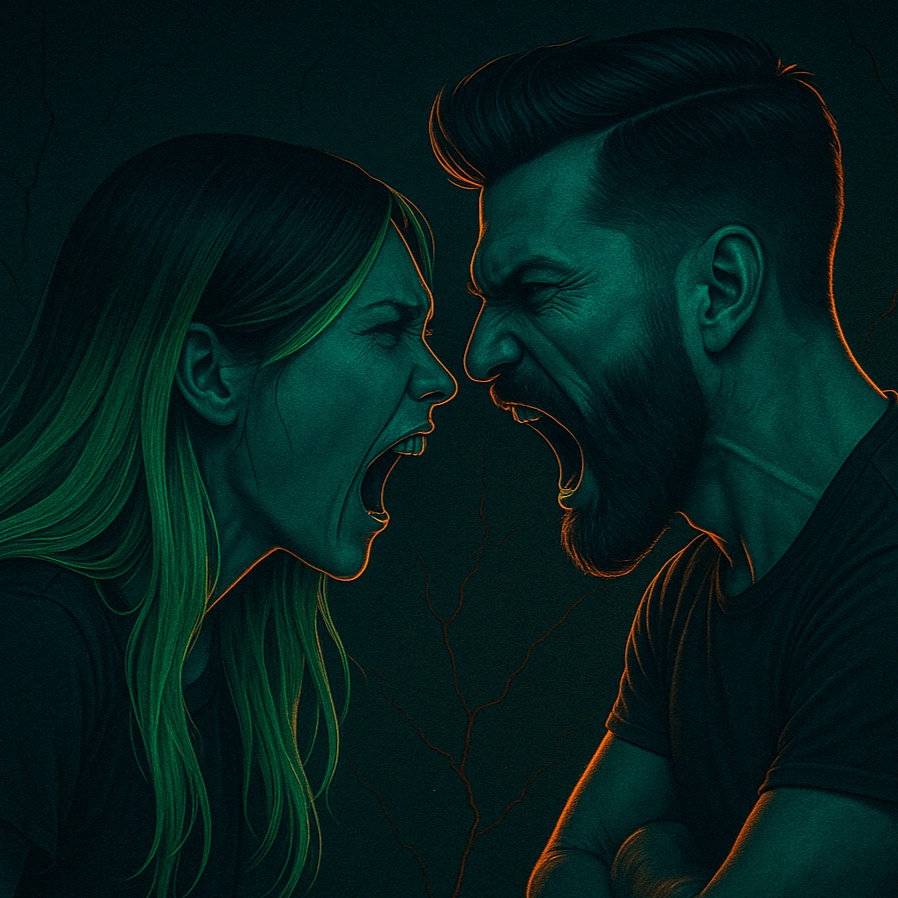 Hip-Hop/Rap-Duett, düster, Mann singt alle Verse, toxische Hassliebe, schneller Beat, schwere Drums, tiefe 808s, melancholische Melodien, Intensiv, brutal ehrlich, Frau singt nur die Hooks