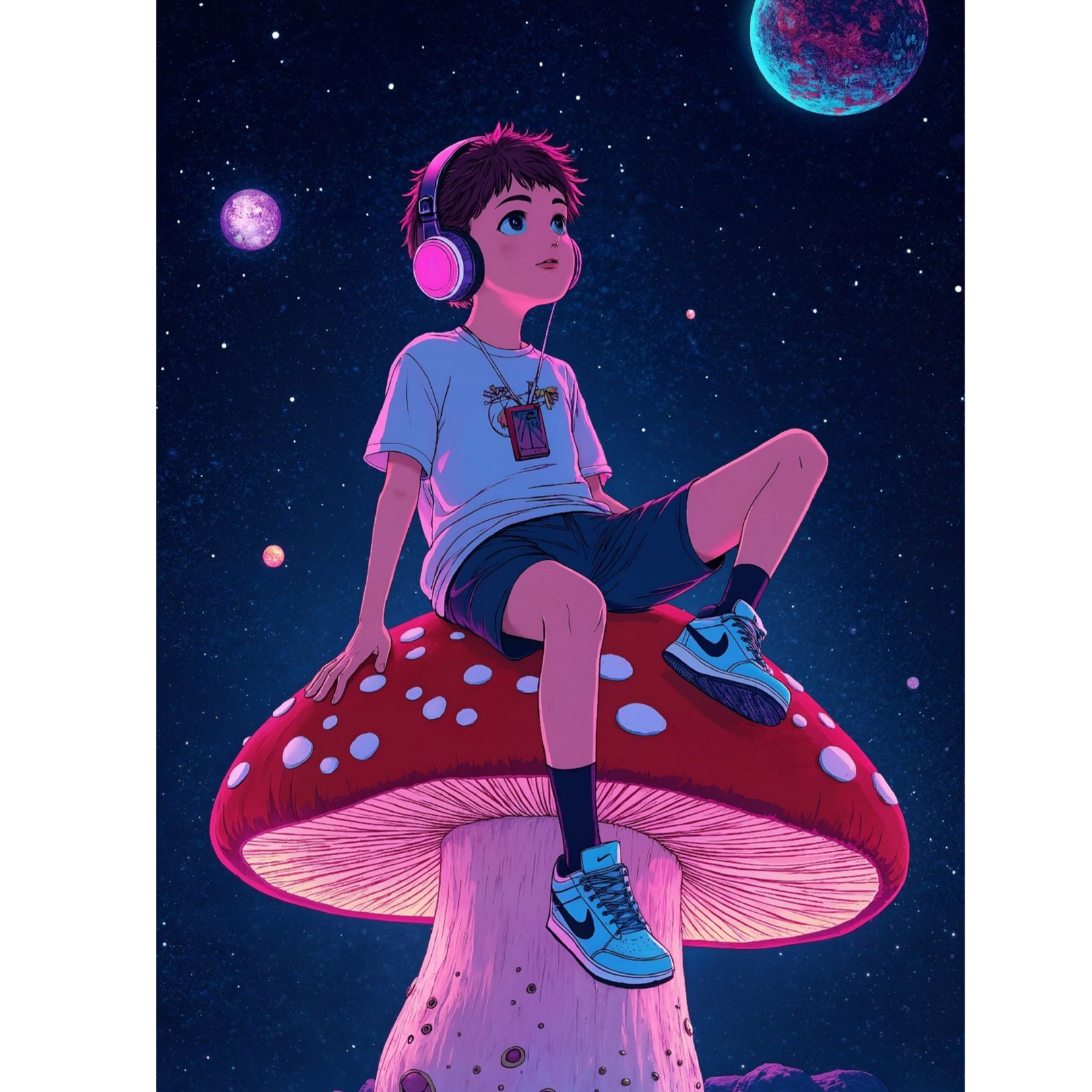 French rap, chill and sensual vibe with airy and luxurious atmosphere, mid-tempo 86 BPM, Male vocal only: smooth, deep and relaxed tone with confident delivery, clean diction and melodic phrasing, light reverb for dreamy texture, Instrumentation: warm analog synths, soft electric piano chords, smooth 808 bass, gentle kick and snare with tight groove, crisp closed hats with subtle swing, background pads with pink and violet tone coloration, and occasional guitar licks for sparkle, Add silky stereo reverb and analog tape warmth to enhance depth, Atmosphere: nocturnal, elegant, slightly erotic, evoking a luxury motel with pink neon lights and haze of hookah smoke, floating sensation like being on a cloud, Structure: intro, verses, hooks, instrumental bridge, outro, Smooth mastering with wide stereo image, balanced low-end, glossy mids and focus on vocal clarity and groove cohesion, ‑no background vocals or female samples