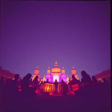 The track ignites with a driving 125 BPM tabla-infused techno groove, where distorted dhol drums and gritty percussive layers slam through a haze of glitchy sitar loops and syncopated handclap rhythms, Looped vocal mantras stutter in between chopped Hindi, Mandarin, and English phrases, flowing over a hypnotic Phrygian dominant scale rooted in North Indian classical motifs, Bollywood-style melodic chants and Bhangra-inspired bass drops collide with K-pop remix sparkles, crafting a chaotic yet magnetic fusion of East and West, The entire production is tuned to 432Hz, enhancing warmth and spiritual overtones, like a rave held in a temple — if the temple served masala shots and laser beams