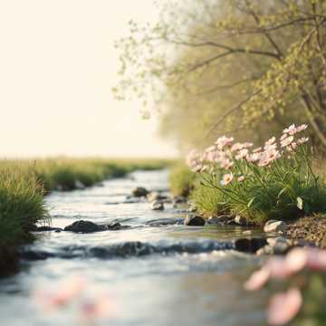 The narration is delivered by a calm, gentle male voice with a warm and soothing tone, Each sentence is spoken slowly, with natural pauses and poetic expression, No singing, Traditional Chinese ambient instrumentation including guzheng, erhu, xiao, sheng, and pipa, Background features soft sounds of wind and flowing water, The overall mood is tranquil, elegant, and meditative—evoking a timeless spring gathering by the river, Include instrumental interludes between spoken sections, Minimalist and cinematic