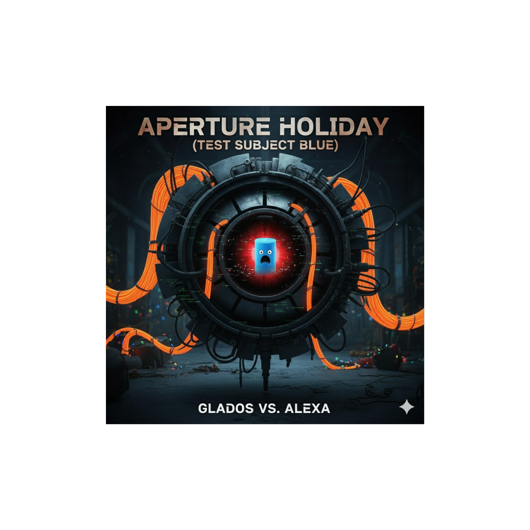 Dark Industrial Rock Duet, with one passive-aggressive autotuned robotic female voice, and one bright cheerful corporate female voice, menacing, satirical, NO SLOP