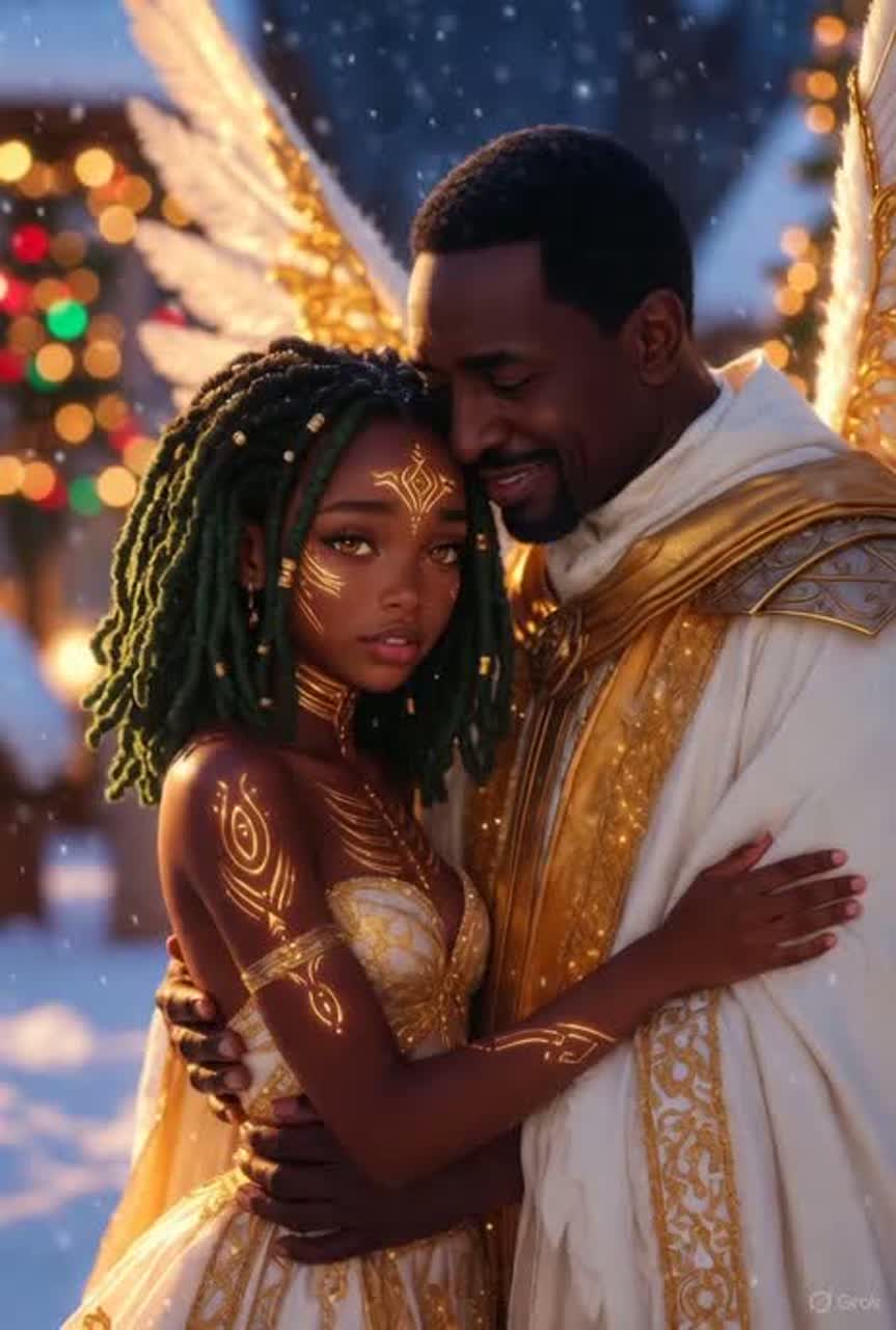 Soulful Christmas duet with rich Black gospel influence, symphonic jazz textures, and deeply emotional vocal interplay, Male vocals: warm, resonant soul tone; rich chest resonance; expressive vibrato; effortless slides; tender falsetto; powerful gospel belts, Female vocals: bright, velvety soulful tone; controlled rasp; agile riffs and runs; airy highs; deep emotional phrasing, Duet Blend: intertwined vocal lines; call-and-response phrasing; overlapping harmonies; soft breathy adlibs; layered gospel-style stacks, Include lush violins, cinematic string swells, upright piano chords, gentle jazz brushes, warm orchestral pads, soft bells, and subtle brass for a festive atmospheric glow, Production should be warm, intimate, vintage, and cinematic—rich symphonic soul with jazz inflections and emotional gospel depth, ]
