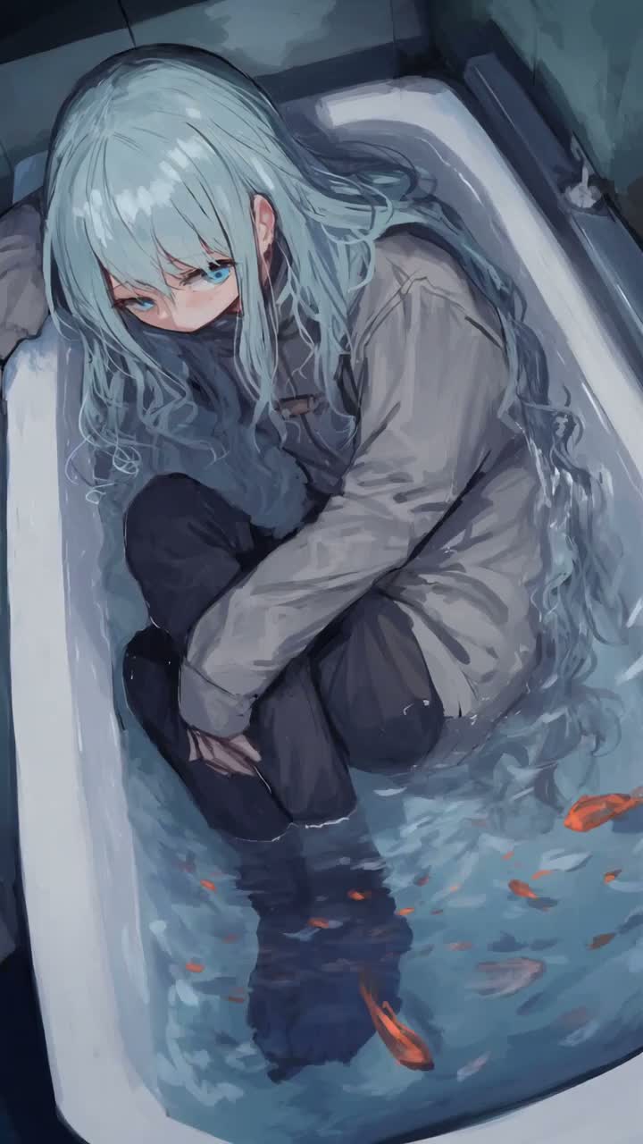 Genre/Style: Kawaii Future Bass, bright but melancholic, instrumental with scattered vocal chops, experimental ASMR, close-up whispers, bubbly FX, watery sizzle sounds, humming "ふんふん", playful and bouncy, rhythmic syncopation, layered supersaw chords, sidechain pumping, deep sub bass, glitch sparkles, airy pads