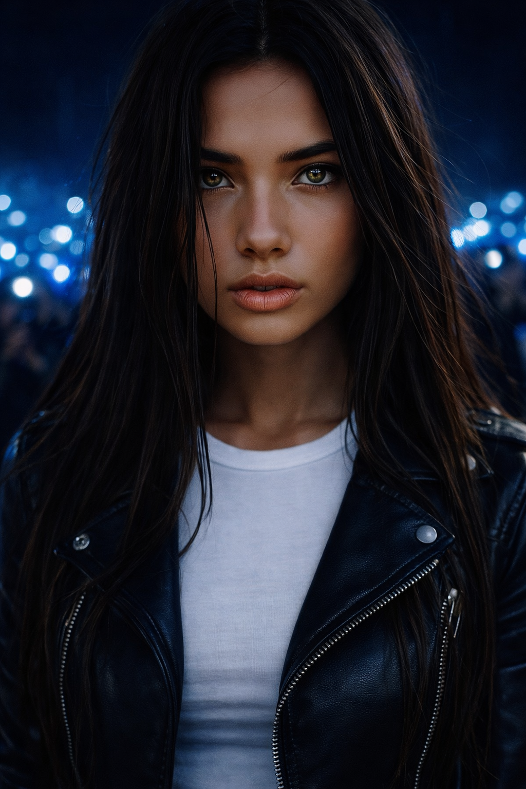 Live concert, Large audience, Crowd reactions, Stadium crowd, Overheated live atmosphere, Audience shouting, clapping, singing along, fully engaged with the performer, Rough intro with saturated digital samples and crackling glitches, before the explosion of a sharp electric guitar, Tight, snapping bass mixed very upfront, leading a martial drumbeat (kick drum/sticks) with a dry, precise rhythm, Deep, husky voice, sometimes spoken, abrasive and tense, Dense, nervous atmosphere, alternating between electric crescendos and minimalist moments of tension, punctuated by noisy breaks, The crowd answers the singer’s calls, echoing and fueling the intensity, turning the performance into a collective eruption, )