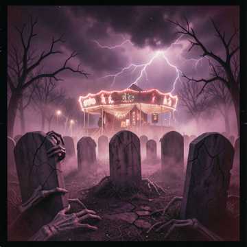 upbeat theatrical power metal, horror metal, catchy heavy metal, driving guitar riffs, double kick drums, clean powerful male rock vocal, epic singalong chorus, spooky symphonic undertones, highly energetic, lively, gothic