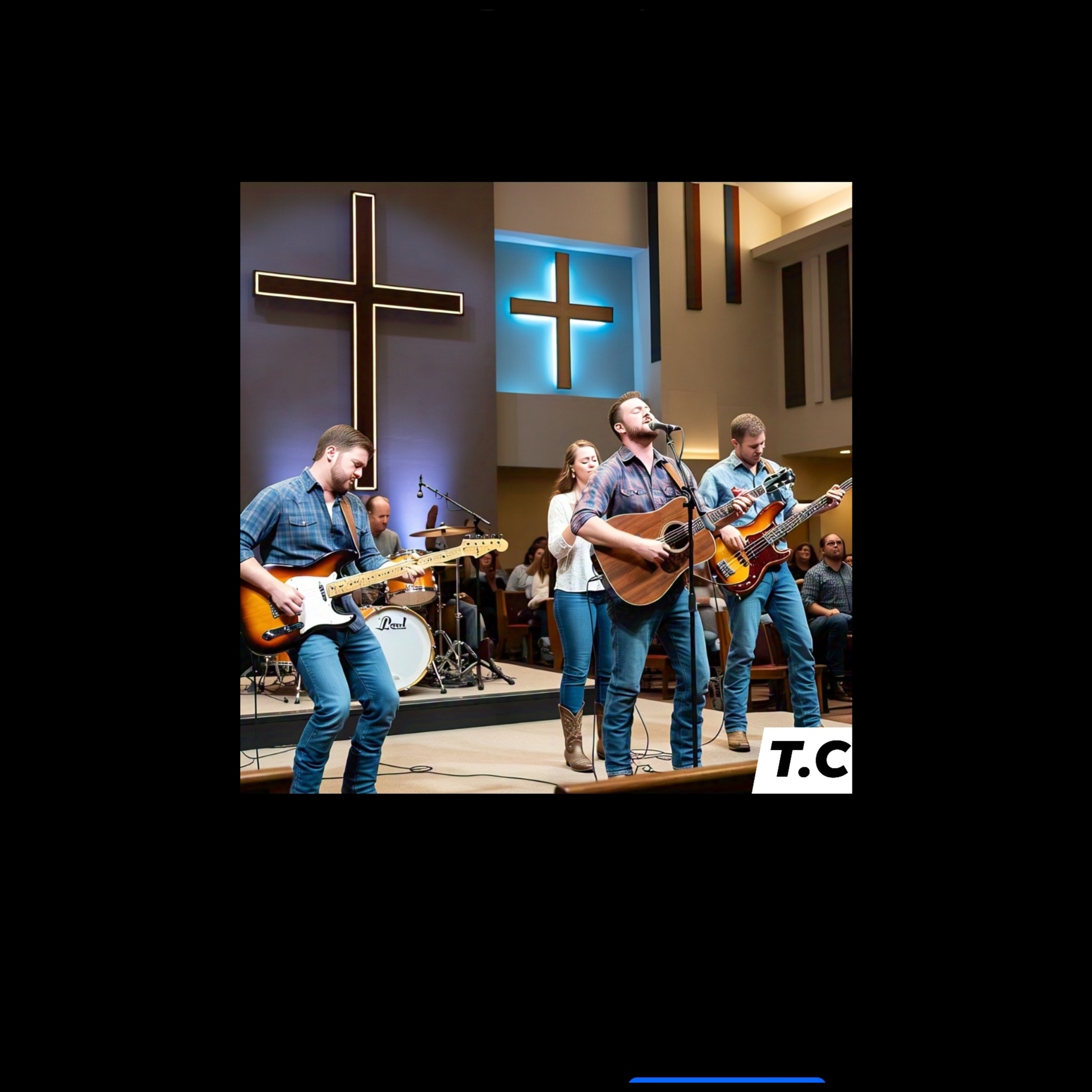 Country pop – steel guitar, acoustic strum, steady kick-snare, Psychedelic – swirling organ, echo guitar, dreamy synth pads, Gospel – choir harmonies, claps, organ flourishes, Motivational Christian – uplifting, faith-centered lyrics, This can be performed with a banjo + slide guitar + Hammond organ + gospel choir + trippy reverb effects