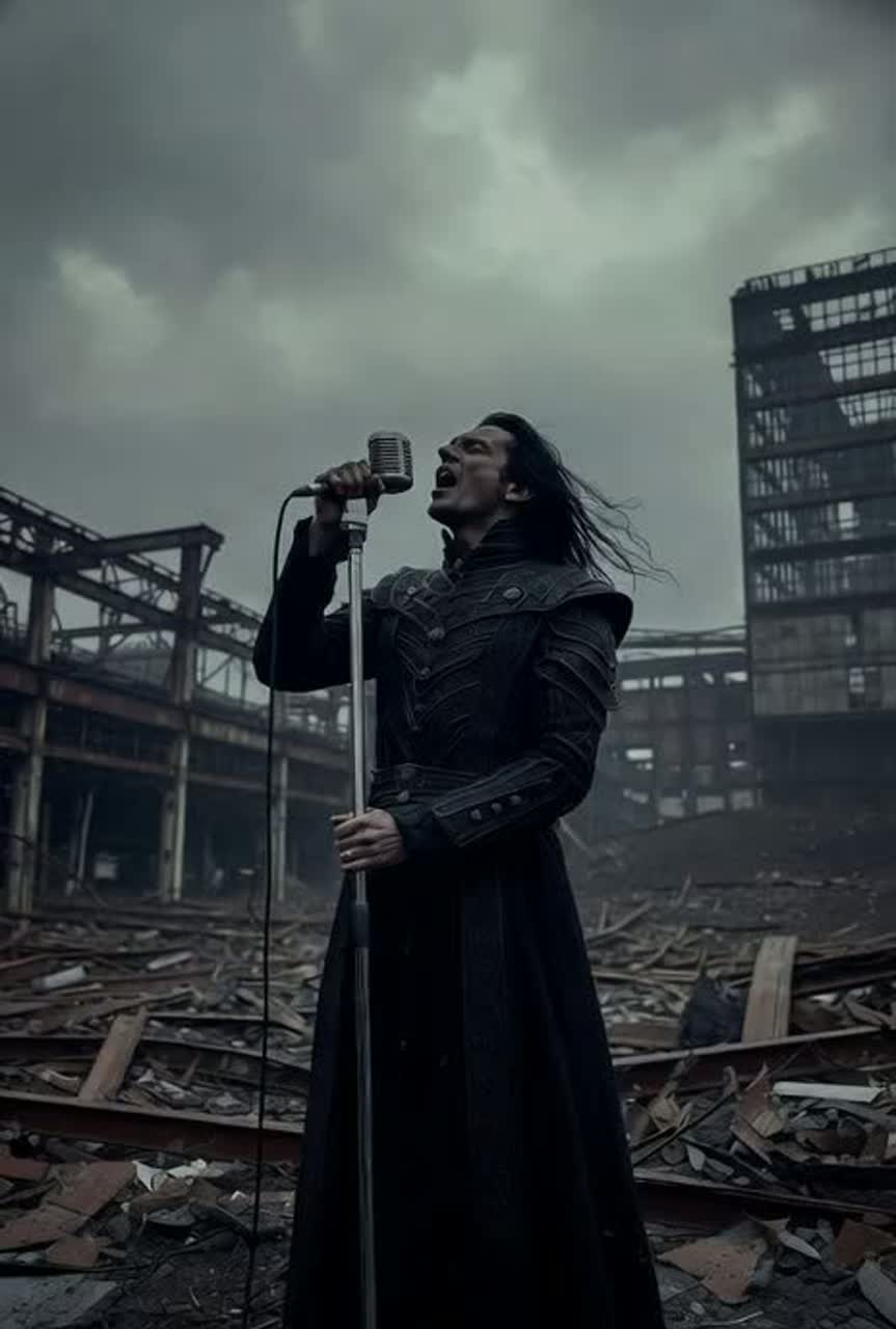 industrial, growl vocals, cold harsh vocals, dark synth, evil deep mechanical percussion, electronic black metal, Industrial drones lead, production is clean and spacious, with a focus on sustained tones and a sense of ambient depth, percussive element, provides a gentle rhythmic pulse, high-pitched, ethereal synth melody plays a melancholic, arpeggiated line throughout the piece, side-chain, professional production