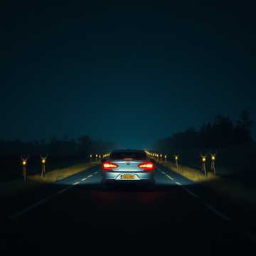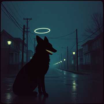 slow nocturnal tempo, hypnotic mantra rhythm, dark art-pop atmosphere, eerie minimalist production, minor key tension, sparse detuned piano motif, felt piano strikes, low analog synth drone, deep sub-bass pulse, distant bowed cello swells, spectral string pads, ghost-choir whispers, breathy close-mic vocal, fragile lullaby tone, mantra repetition hook, childlike chant turning ominous, call-and-echo vocal layers, hush-to-surge dynamics, muted kick heartbeat, soft brushed snare, ticking hi-hat pattern, subtle trip-hop groove, cavern plate reverb, long shadowy delay tails, reverse piano swells, granular wind ambience, night-road atmosphere, distant engine hum textures, headlight-glow soundscape, analog tape saturation warmth, vinyl crackle undertone, haunting harmonic suspensions, cinematic dread build, slow spiraling bridge section, whispered spoken lines, luminous eerie chorus lift, stark emotional minimalism, dark poetic storytelling, dreamlike surreal mood, somber prophetic energy, hy