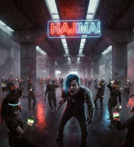 J-rock hyperpop fusion, 138 BPM, explosive ONE OK ROCK-style distorted guitar riffs with palm-muted verses exploding into open power chords on chorus, punchy 808 drums layered with taiko hits, analog Juno-60 pads, glitchy FM arpeggios, bright glockenspiel hook, androgynous East Asian vocal with emotional delivery and subtle autotune shimmer, double-tracked harmonies on "-jima" suffixes, warm tape saturation, sidechain compression pumping on kick, lo-fi high-end roll-off for mobile listening, euphoric dance energy contrasting anxious restrictive lyrics ("don't do it hajima"), rebellious youth vibe optimized for Southeast Asian TikTok/Reels virality — 15-second loopable drop at 0:25 with taiko hit → guitar stab → vocal explosion "HA-JI-MA!", taiko drum fills, crowd noise samples, pentatonic guitar solo break, Thai bamboo flute texture in breakdown, mobile-optimized mix for phone speakers, pitching, earworm