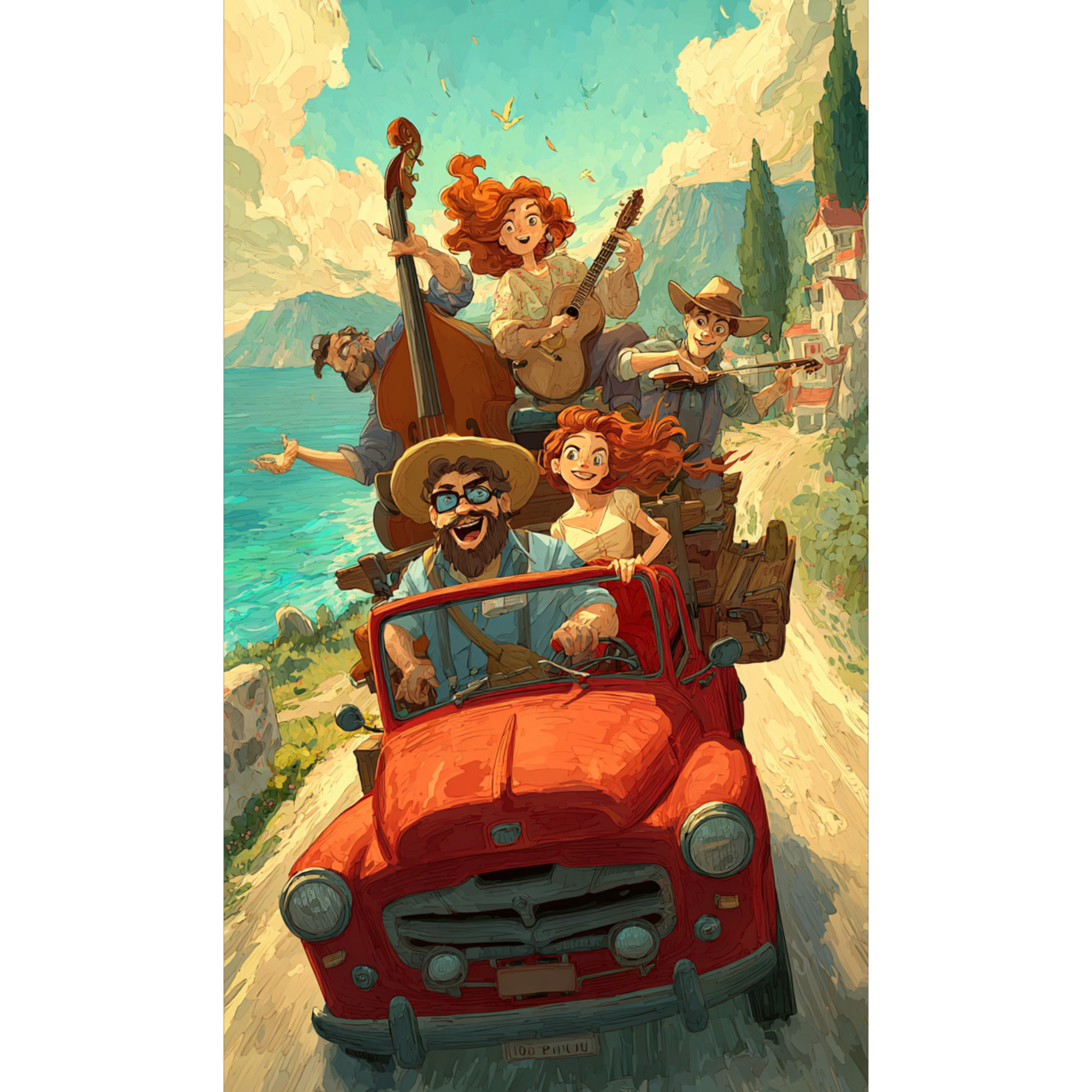 Live perfomance, bluegrass, Live stage ambience, minimal compression, stereo mic image of small barn or outdoor stage, Tempo: 120–130 bpm, driving but human groove, Banjo (5-string): rhythmic roll patterns, syncopated fills between vocal lines, slight mic bleed for live feel, Acoustic guitar: percussive strumming, light palm-mute in verses, open chords in chorus, Upright bass: clear pluck, woody tone, classic bluegrass 1–5 walk, Mandolin: bright chop rhythm on backbeats, light tremolo on transitions, Fiddle: melodic responses, soaring harmonies in bridge and outro, Energy builds naturally: verse 1 intimate, chorus wide and joyful, bridge adds instrumental breaks (banjo + fiddle solo trading), Mood: uplifting, spontaneous, rural-night euphoria, Avoid: electronic drums, synths, or any artificial processing — keep it 100% acoustic and live-feel