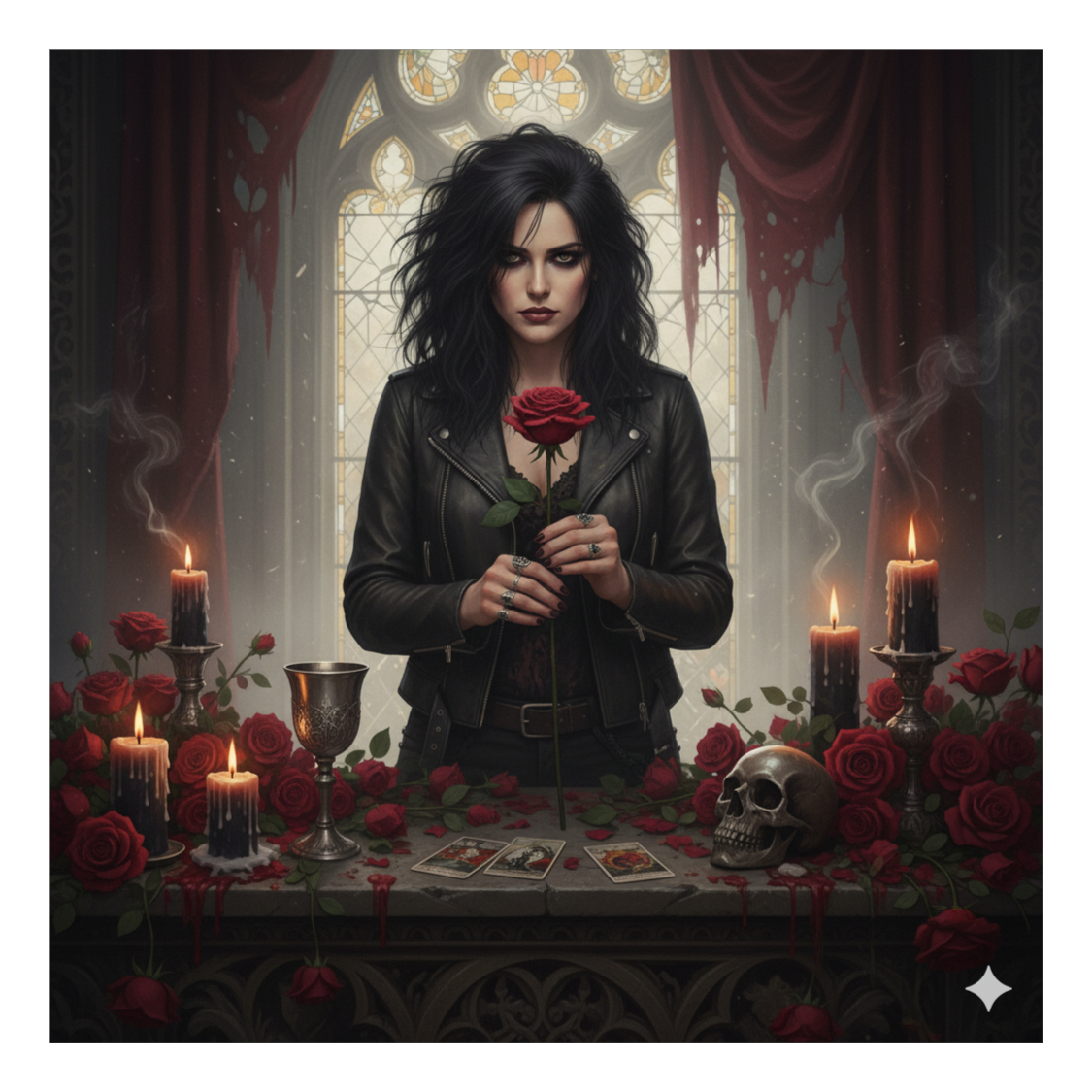 gothic rock, orchestral, symphonic rock, gothic rock; haunting choir harmonies, dark, orchestral strings for depth, violin, viola, chello, drums, choir, gospel, layered chorus