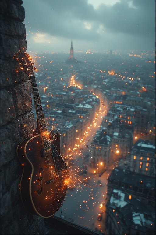 Progressive rock ballad with deep house atmospheric elements, deep female vocals, massive electric guitar solo and dreamy pads