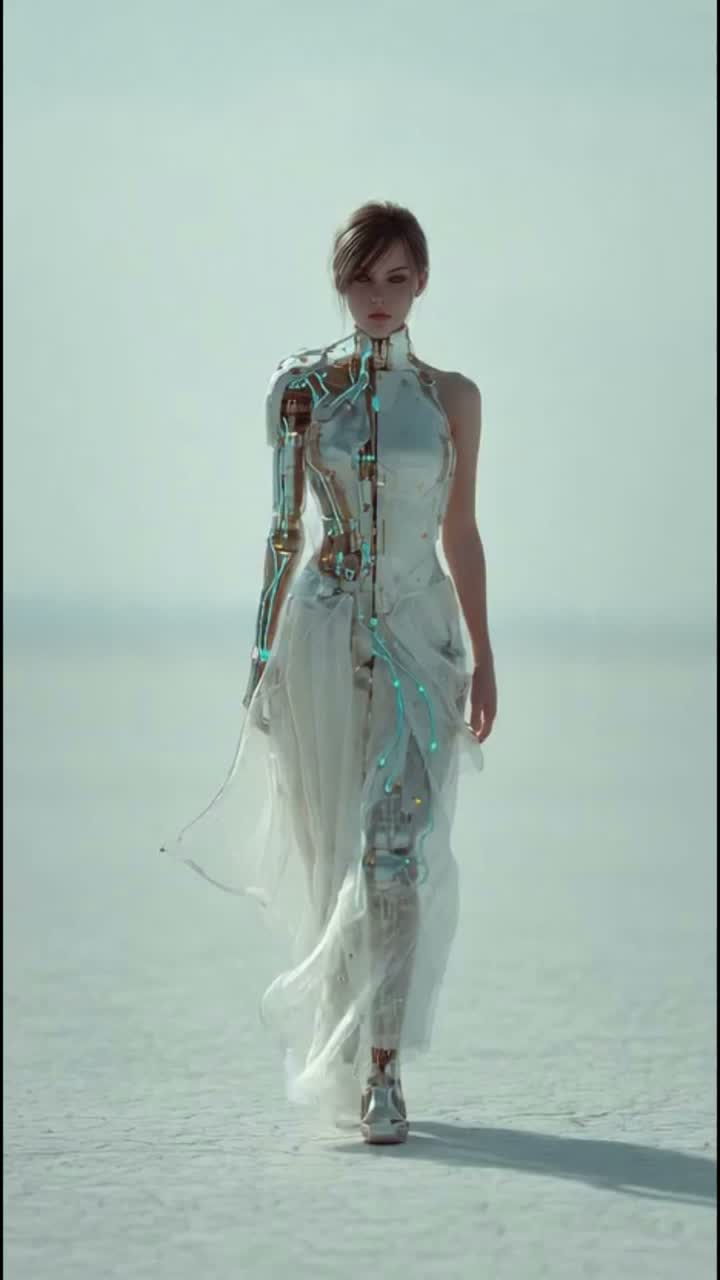 Industrial glitch rock, 100 BPM, IMMEDIATE distorted electric guitar riffs, gritty synth-layers, sharp mechanical drums, clean melodic female vocals, NO SCREAMING, high energy, polished production, rhythmic and aggressive
