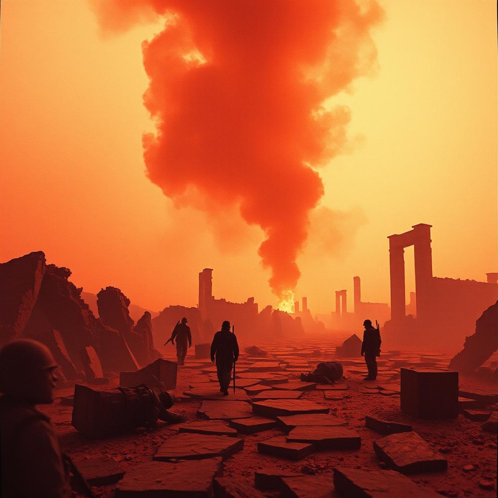 cinematic, minor key, thrash metal, progressive metal, dramatic, orchestral, heavy, chaotic, war drums, despair, tension, dynamic shifts, haunting, emotional, PTSD, explosive, dark ambient, tragic