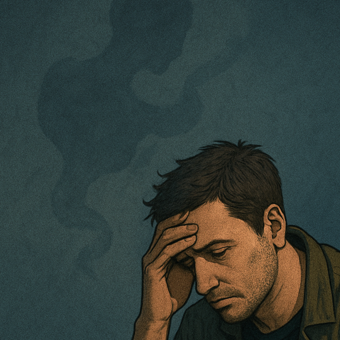 A deep, emotional male voice reading a reflective poem, Calm, somber, intimate tone, like spoken word, Minimal ambient background, The focus is on the quiet intensity and raw honesty of the voice