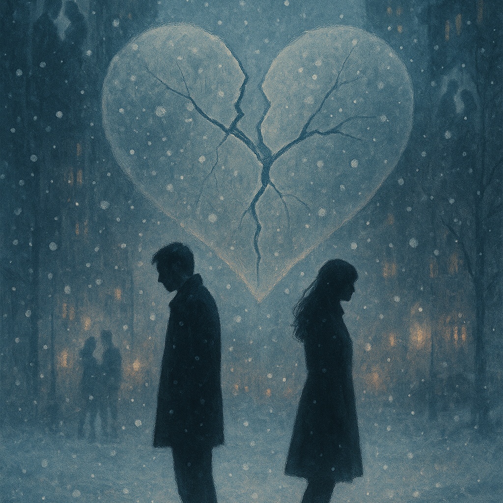 Melancholic ballad with emotional male vocal — high tenor, soft, slightly breathy, with subtle vibrato, Sounds vulnerable and intimate, as if holding back tears, yet controlled and clear, Piano-driven arrangement with subtle strings and minimal percussion, Theme: quiet heartbreak, silent goodbye, the pain of growing apart, Express deep vulnerability with honesty and restraint — tender, reflective, and raw