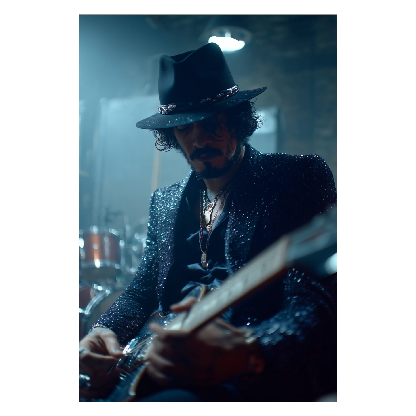 Tags: "90 BPM, moody, powerful, cinematic build, dark blues tone, southern rock energy, atmospheric tension, deep voice, live feel, emotionally intense"
