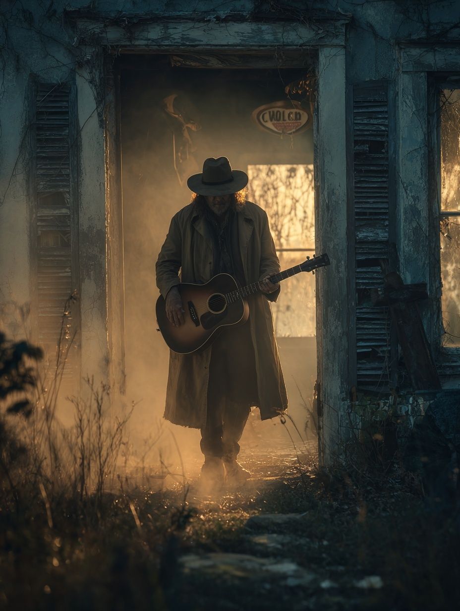 Delta blues fused with folk, gospel, field hollers, country sorrow, Sparse, powerful, born from Mississippi earth and myth, Style: