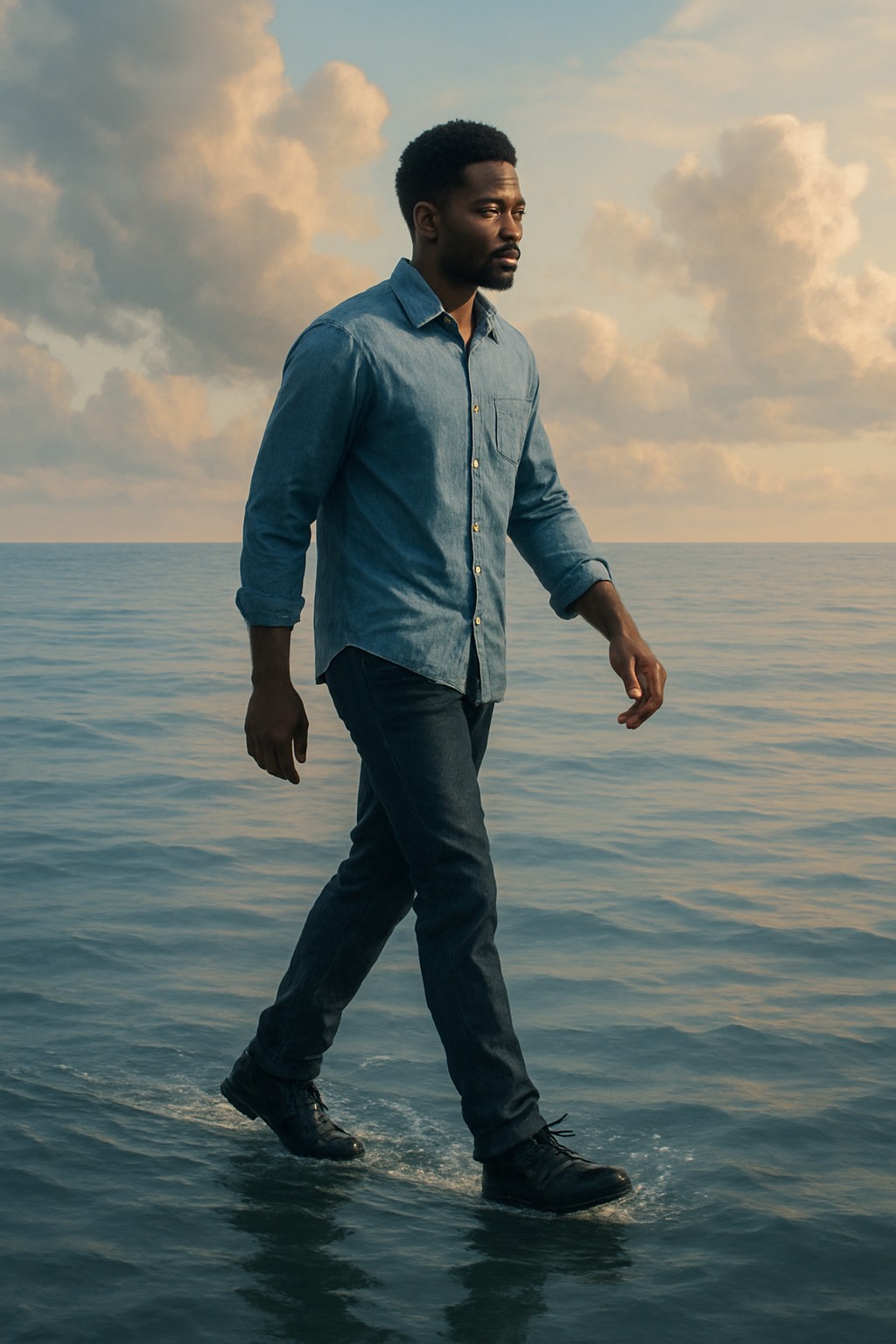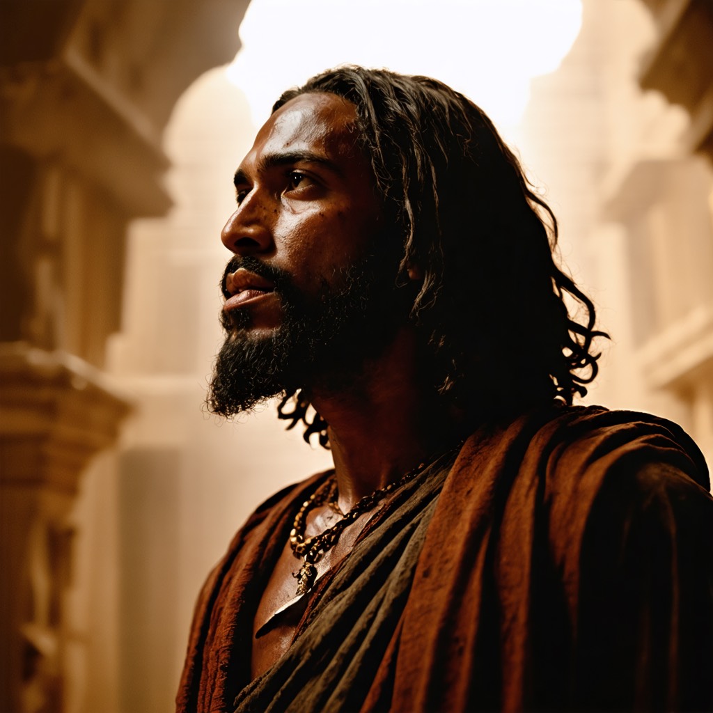 a gospel song with an urban male lead vocalist and a male backing choir, The lead vocalist is a baritone with a smooth, resonant tone, employing a melismatic vocal style, The backing choir provides rich, sustained harmonies, primarily in block chords, supporting the lead melody, The tempo is slow, and the rhythm is free, without a strict metronome, The song is in a major key, conveying a reverent and uplifting mood, The production emphasizes vocal clarity and natural reverb, creating a spacious and intimate sound with mixed synths and appropriate sound effects, 5:4 time, be excellent!