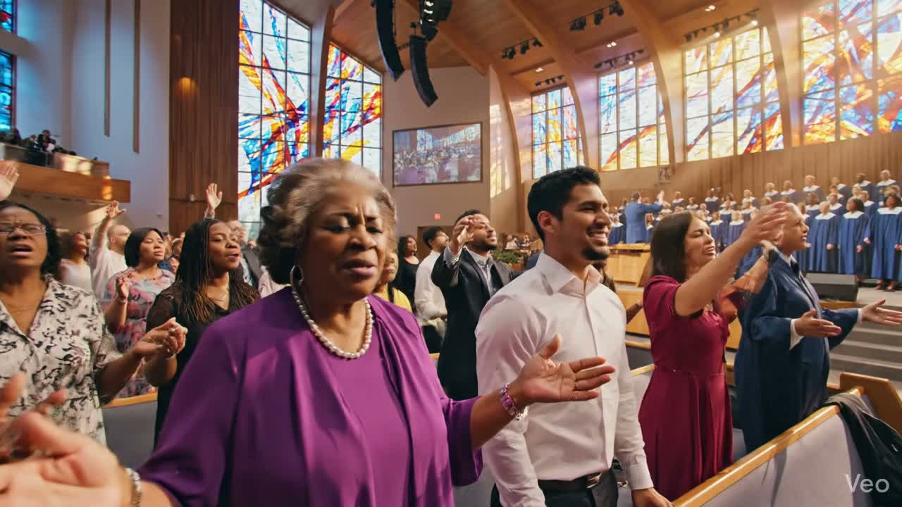 Live worship performance with full gospel choir and engaged congregation, ambient room mics capturing congregational singing in the background, dynamic crescendos and intimate drops, rich string arrangements, warm grand piano, steady live rhythm section, spacious hall reverb, crowd responses and call-and-response moments, soulful lead vocal supported by layered choir swells and soft congregational sing-alongs for immersive worship atmosphere
