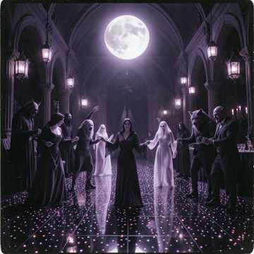 dark disco, goth pop, reggae tinged hip-hop, 122 BPM, female belt vocals, funk guitar stabs, slap bass riff, gothic synth stabs, disco piano chords, offbeat rimshots, syncopated hi-hats, four-on-the-floor kick, call-and-response chants, parallel compression, tape saturation, plate reverb, stereo widener, midnight swagger, defiant energy