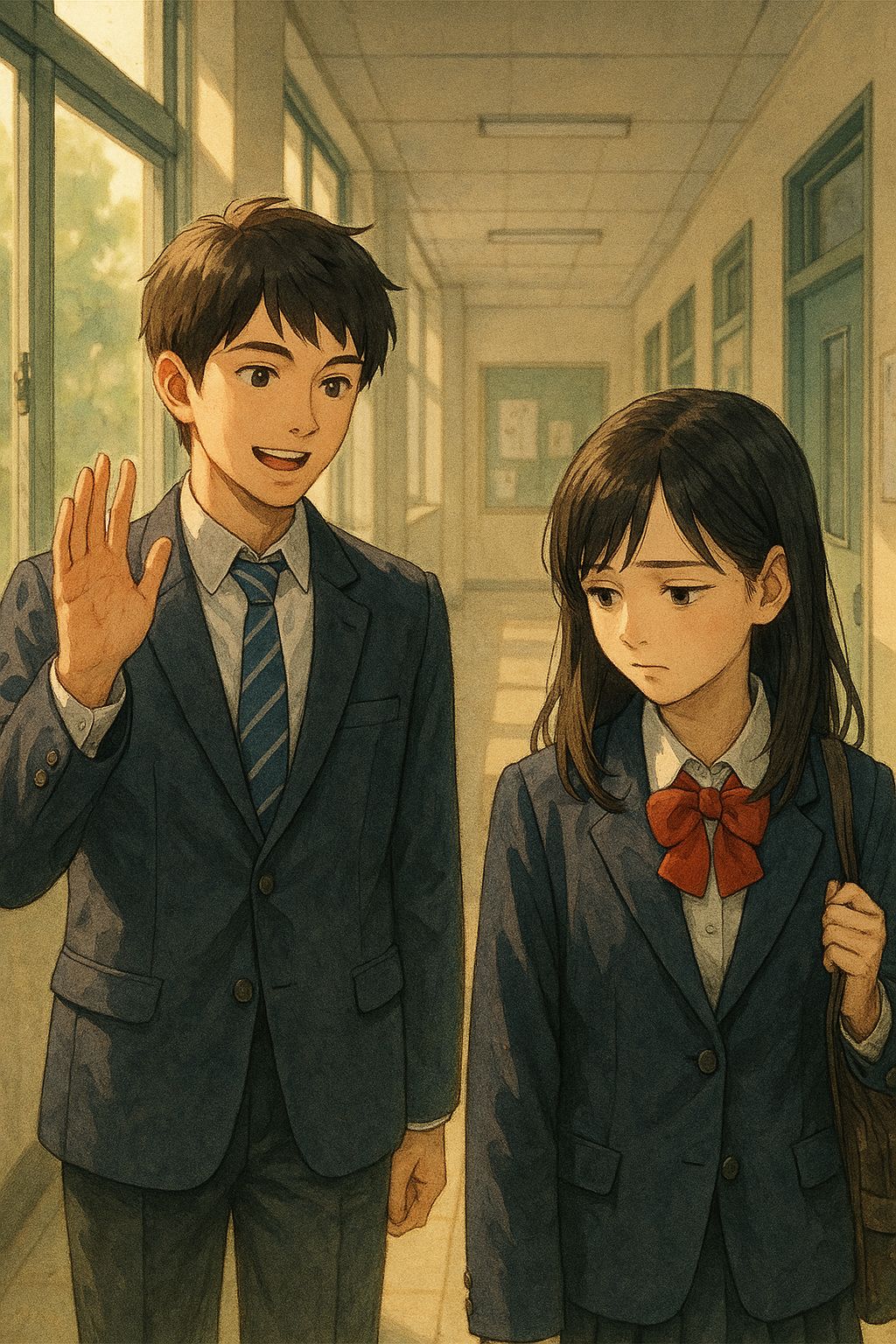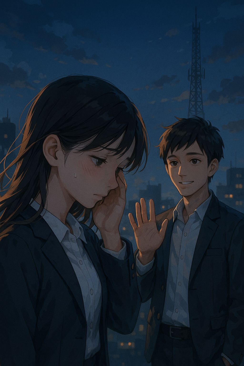 Anime insert/ending song, emotional dramatic build, no guitar, Tempo ~120 BPM, Start with low piano and cold ambient pads, soft female vocal slightly tense, Add pulsing bass and minimal percussion to create conflict feeling, Strings gradually intensify, alternating quiet and powerful sections, Chorus expands with choir and full orchestral drums expressing emotional clash and determination, Mood: doubt → confrontation → resolve, Clear pronunciation, cinematic anime style, bittersweet and passionate but not aggressive rock, Final chorus strong then sudden soft ending with echo and wind ambience