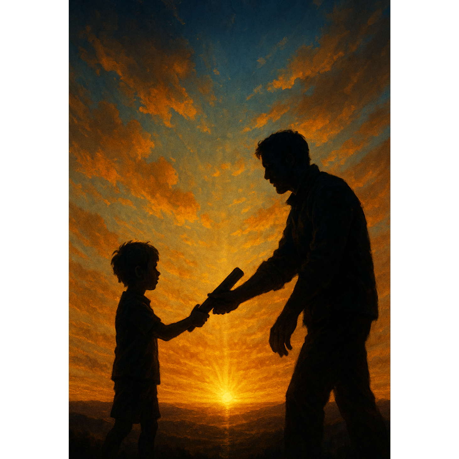“Ultra-cinematic emotional finale, Warm piano, deep cello, evolving full strings, emotional brass, massive orchestral drums, atmospheric pads, and gentle choir, A grand climax song about life, death, inheritance, pride, and the ‘life baton’ passed to the next generation, Soft sorrow → radiant acceptance → heroic rise, Tender verses, soaring emotional chorus, tearful bridge, and a triumphant final climax filled with light, A movie ending theme where sunrise breaks after long grief, ”