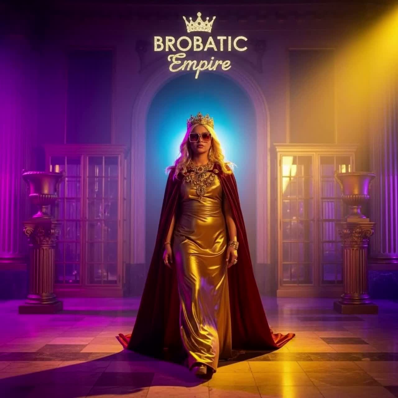 An English R&B and hip-hop track in a playful battle rap style with subtle dubstep elements, The song features a female rapper with a clear, rhythmic delivery and a sexy mezzo-soprano voice with a punky timbre and a touch of British flair, The instrumentation includes a distinctive, driving, hard drumbeat with a powerful kick and snare, a deep bassline, and a melody that creates an epic, triumphant, royal atmosphere, Subtle synth pads and occasional sound effects emphasize the royal character, The song follows the typical verse-chorus structure, The moderate tempo and minor key contribute to the epic mood, The production is clean and balanced, with a good balance between vocals and instruments, The mix highlights the clarity of the vocals and the punchy drumbeat
